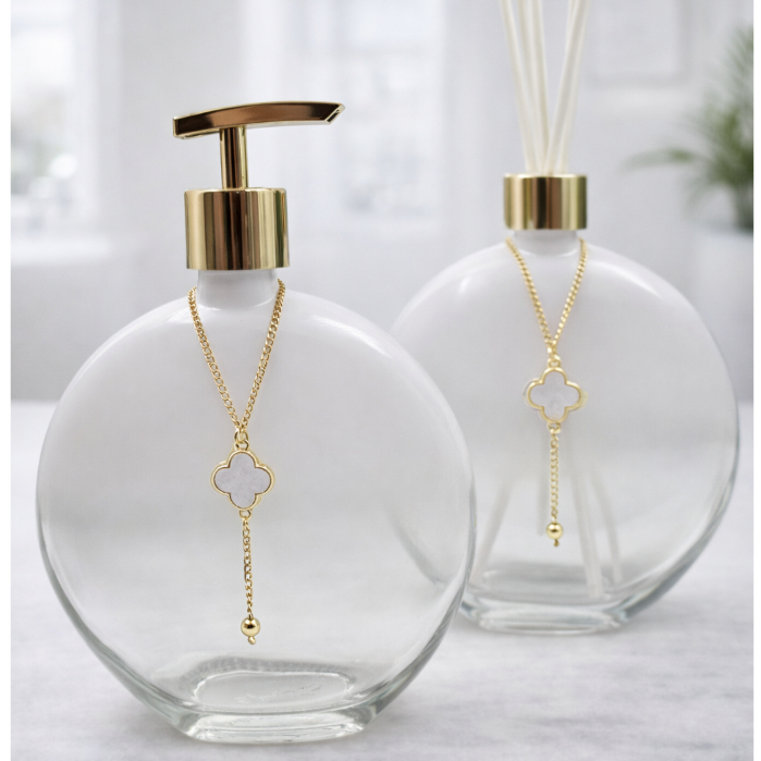 Kit Lavabo Banheiro Luxo em Vidro Luna Branco 500ml - Saboneteira e Aromatizador