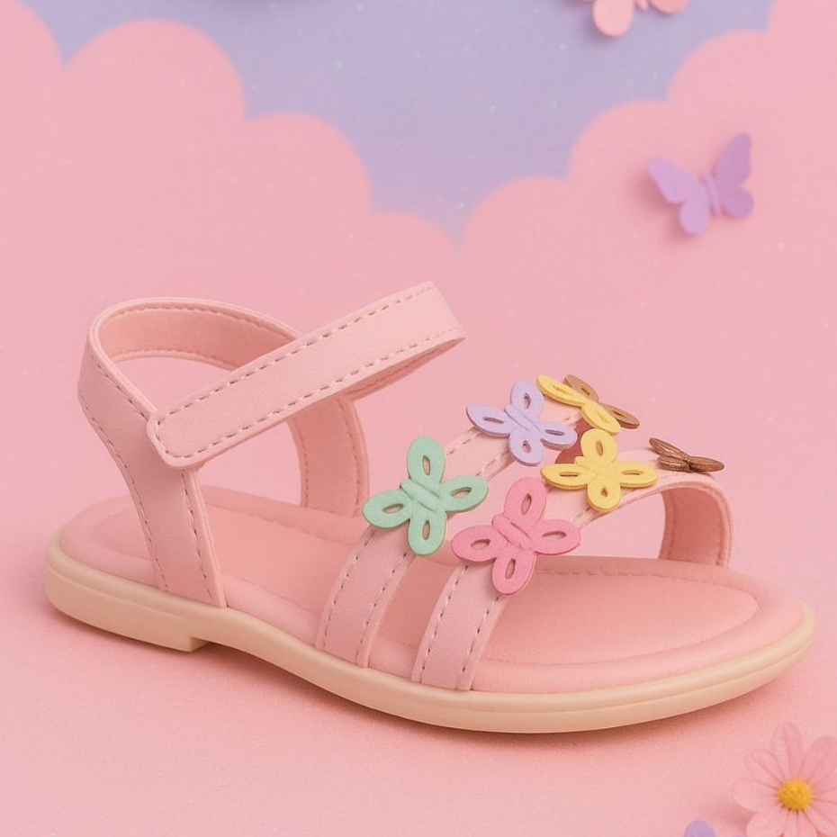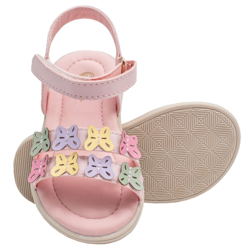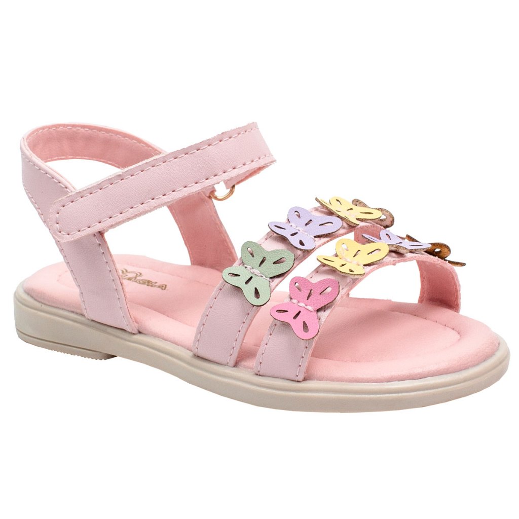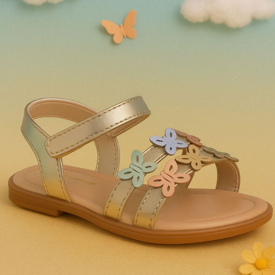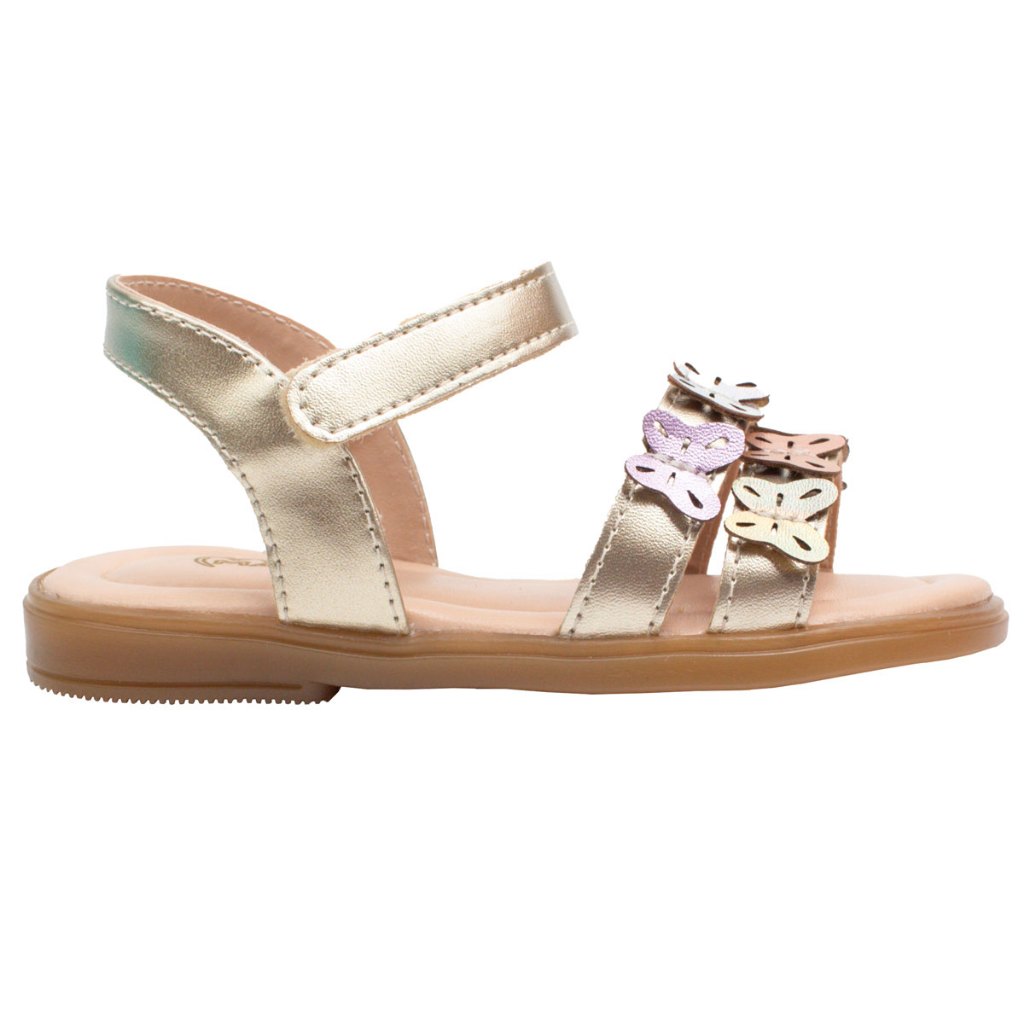 Sandália Infantil Menina Confortável Papete Criança Colorida Promoção Rosa Dourada Ouro Borboleta