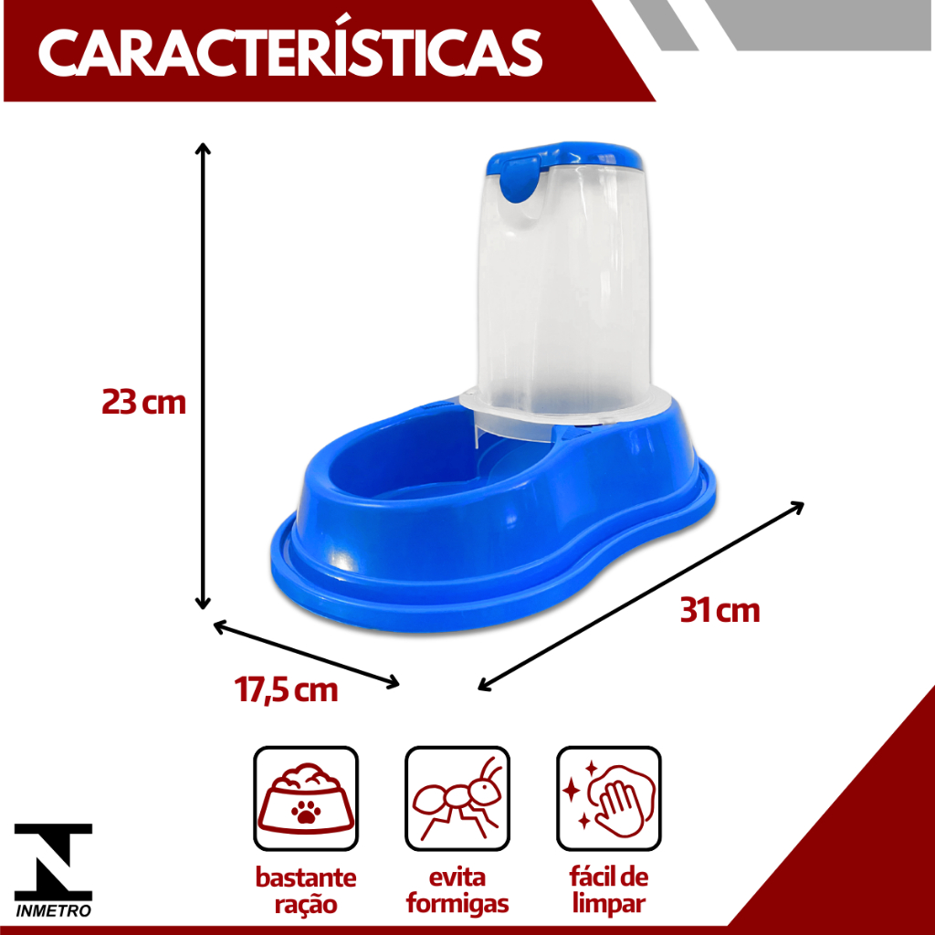 Comedouro Automático com Trava Dosador e Tampa Para Cachorro Cães Gatos