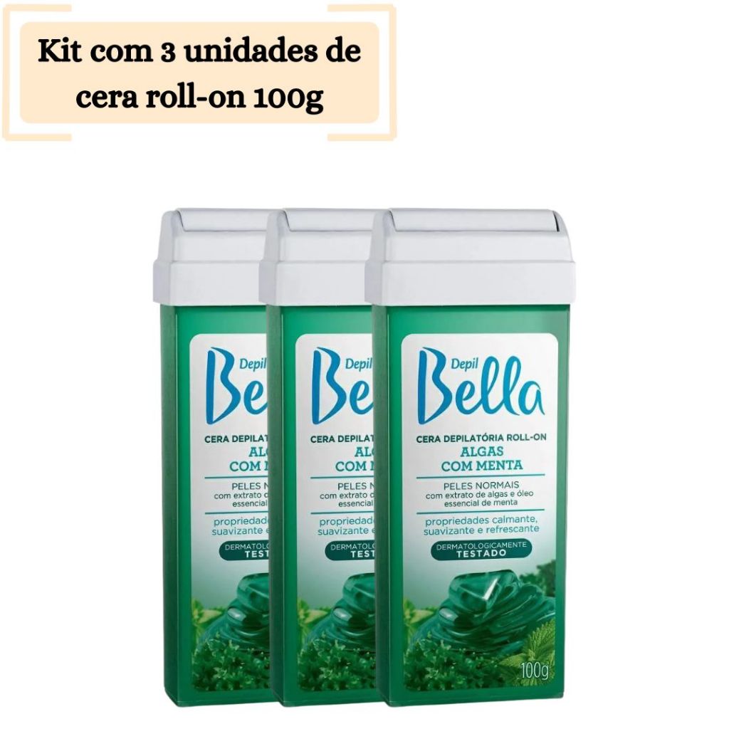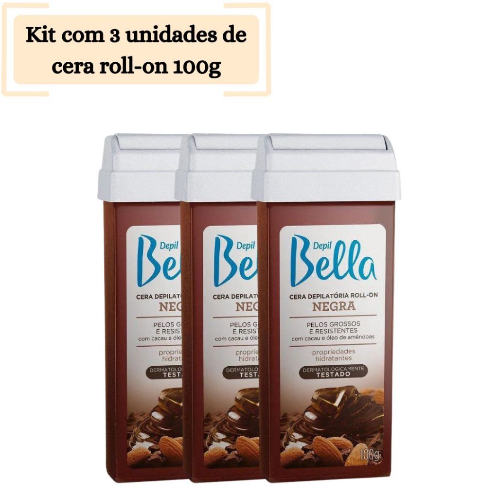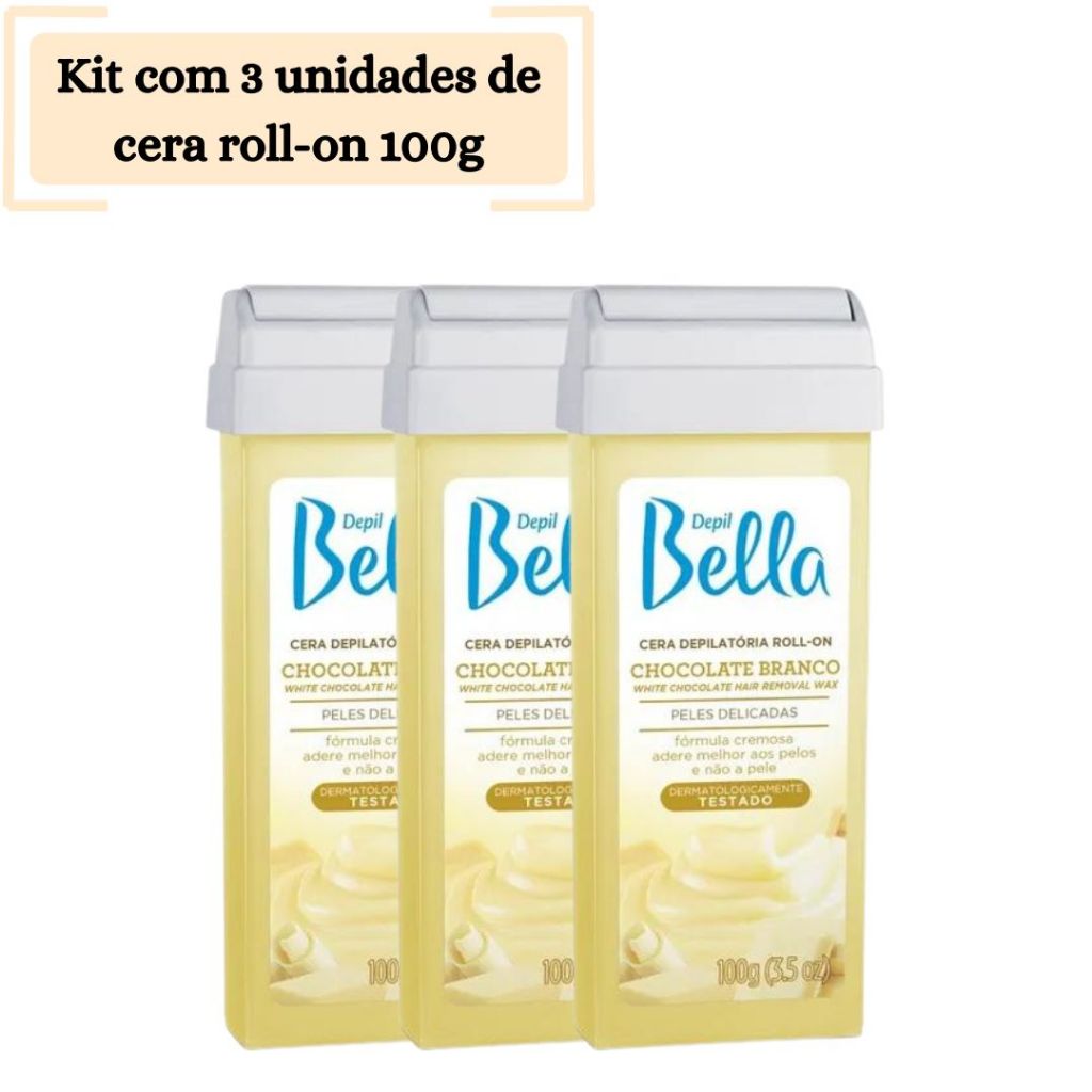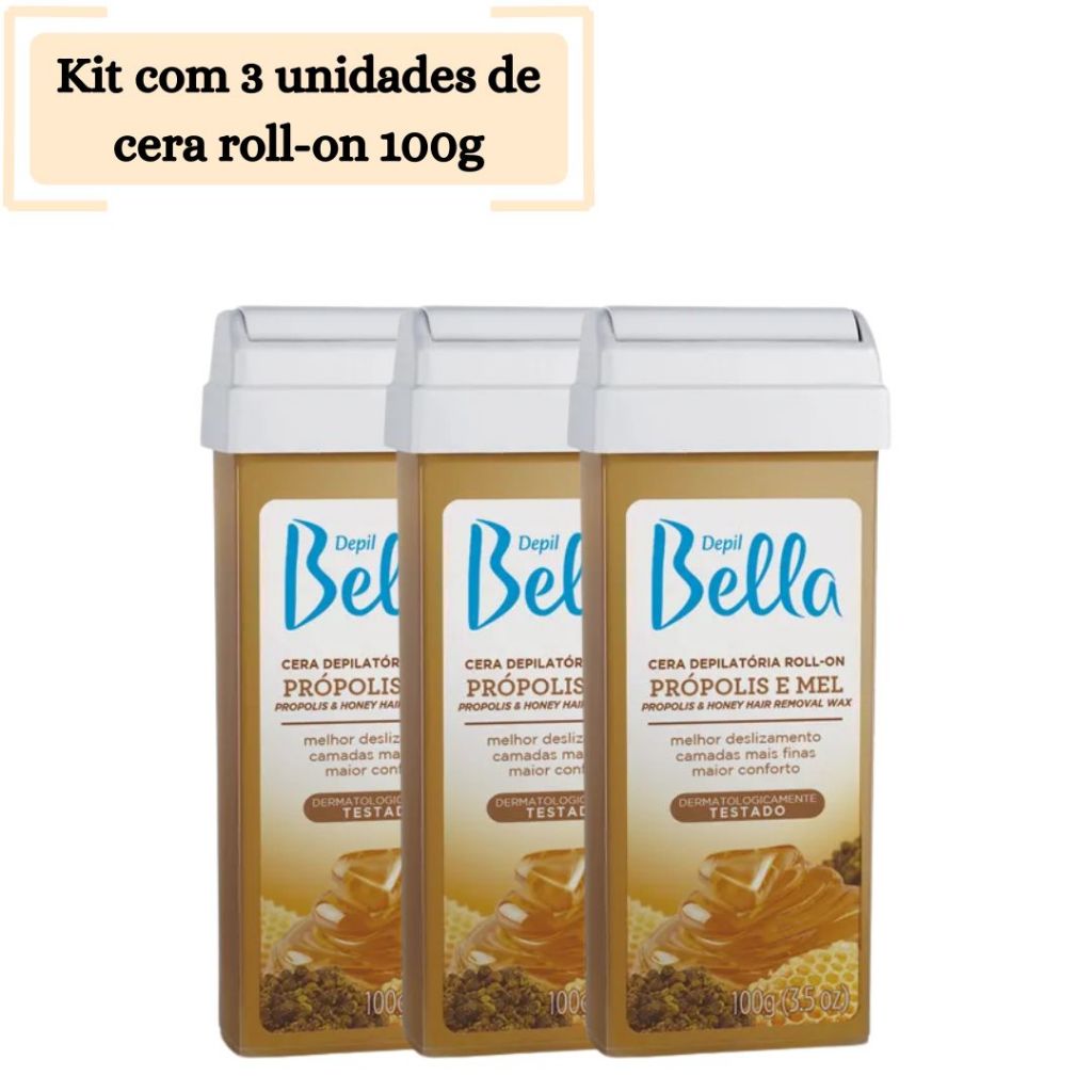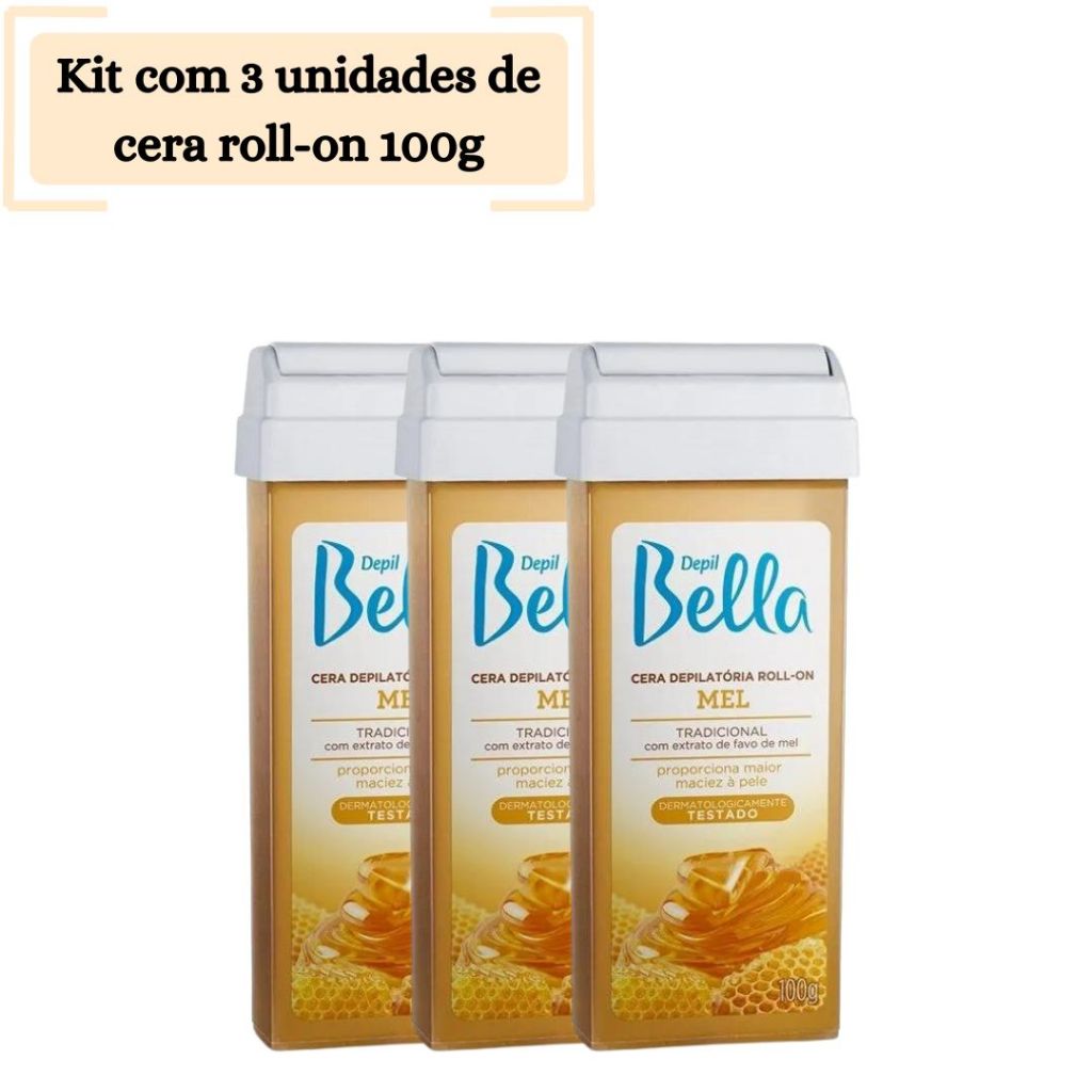 Kit com 3 Unidades de Cera Roll On Depil Bella 100g