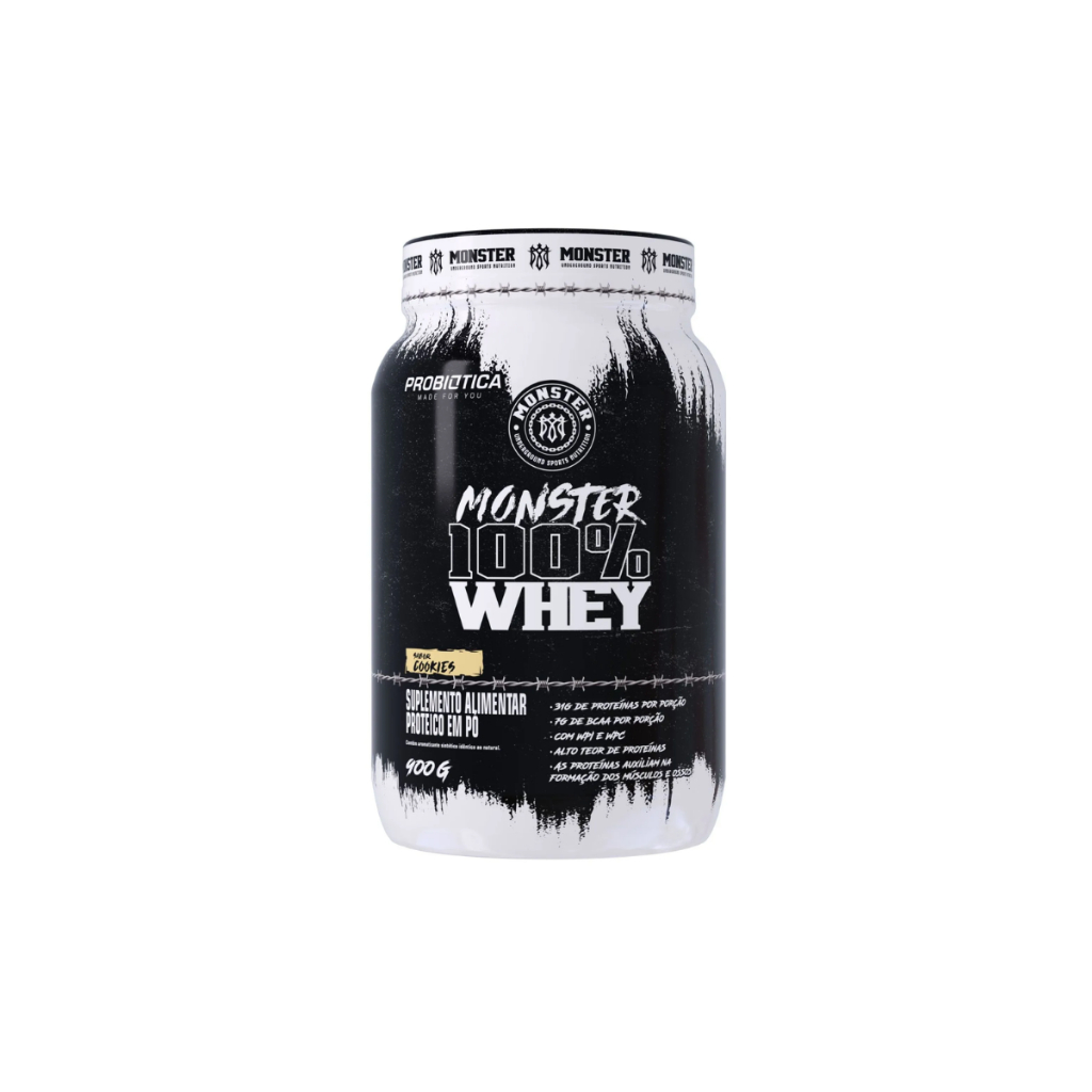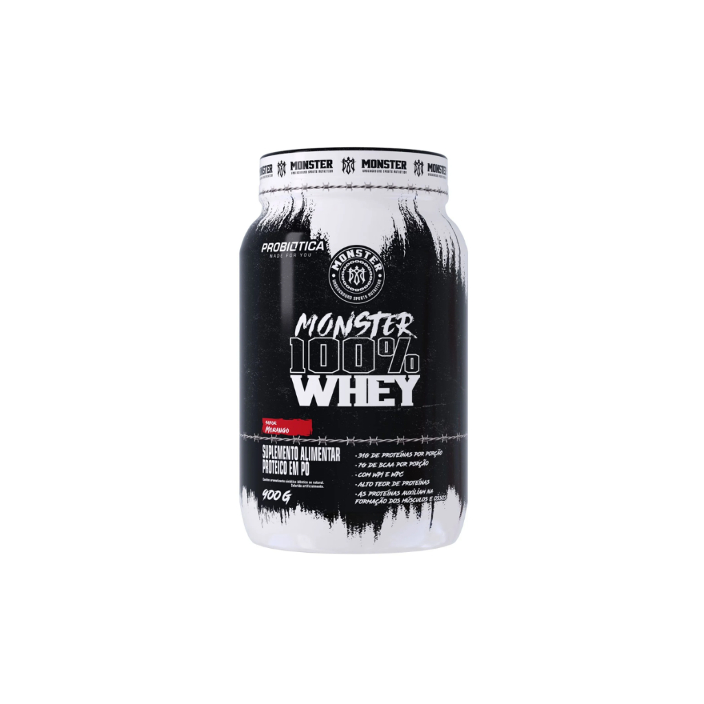 Suplemento em Pó Monster 100% Whey Protein Pote 900g Proteínas - Probiótica