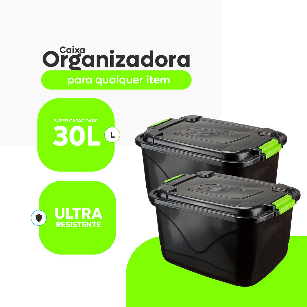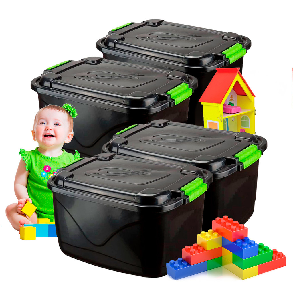 Kit 4 Caixas Organizadora 30 Litros Grande C/Tampa e Trava Cesto para Brinquedos e Multiuso