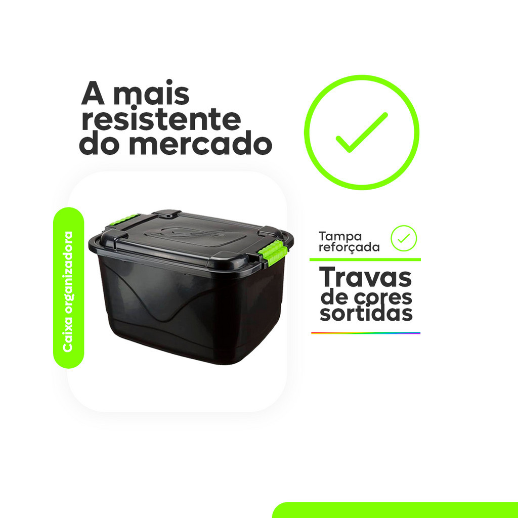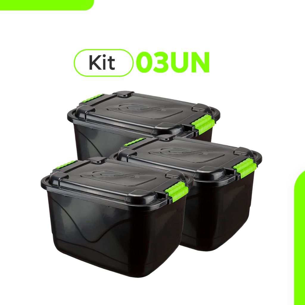 3 Caixas Organizadora 30 Litros Grande C/Tampa e Trava Cesto para Brinquedos e Multiuso