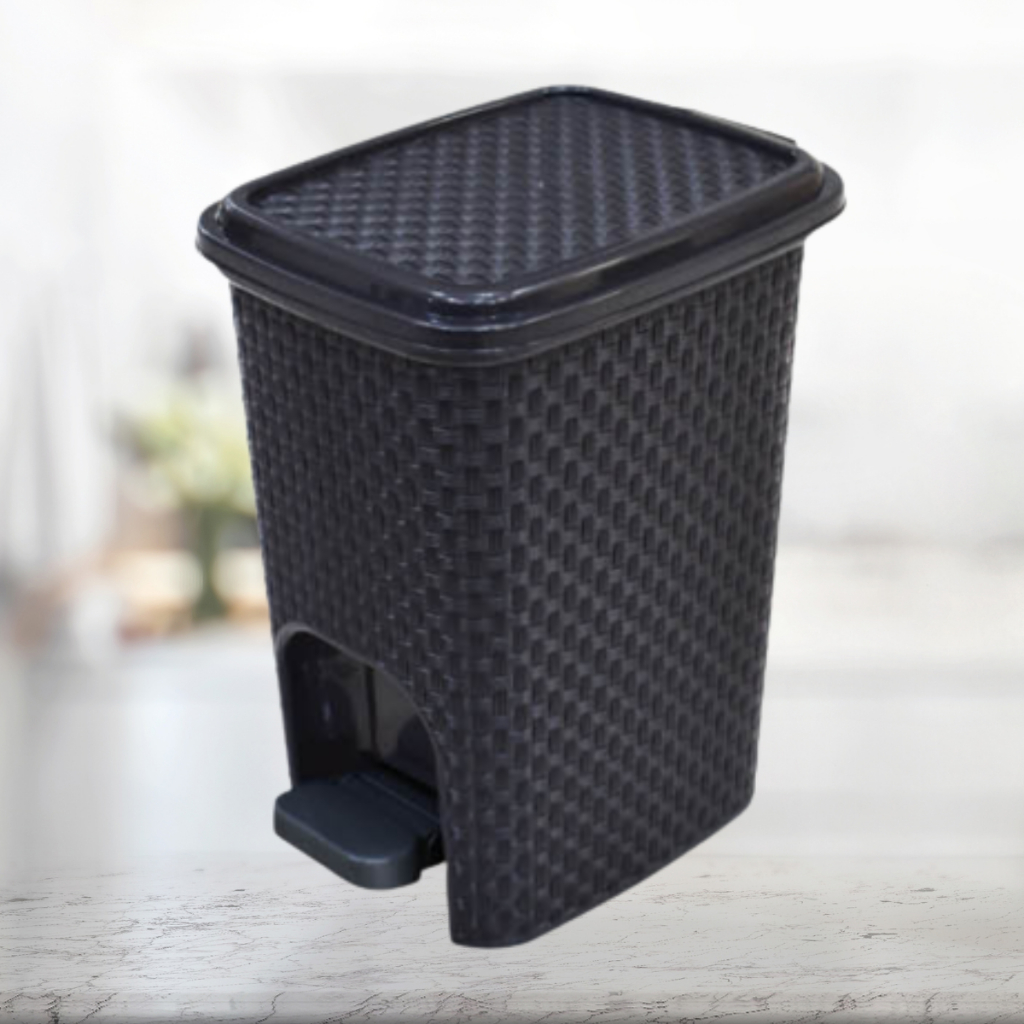Lixeira 7 Litros Cesto de Lixo Com Tampa Pedal Para Cozinha Banheiro Escritório Rattan Reforçada Plástico Preta