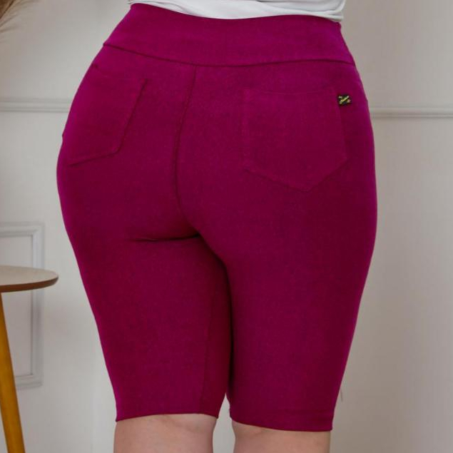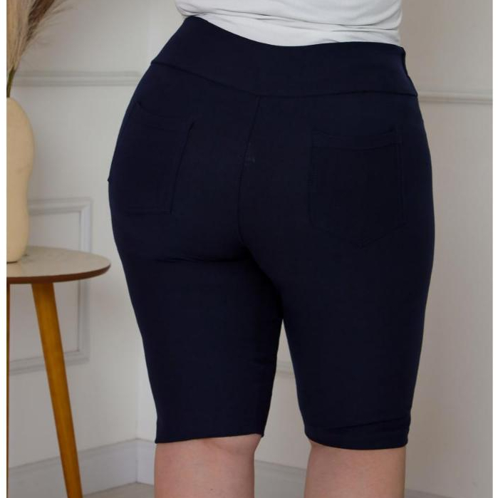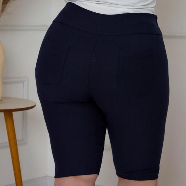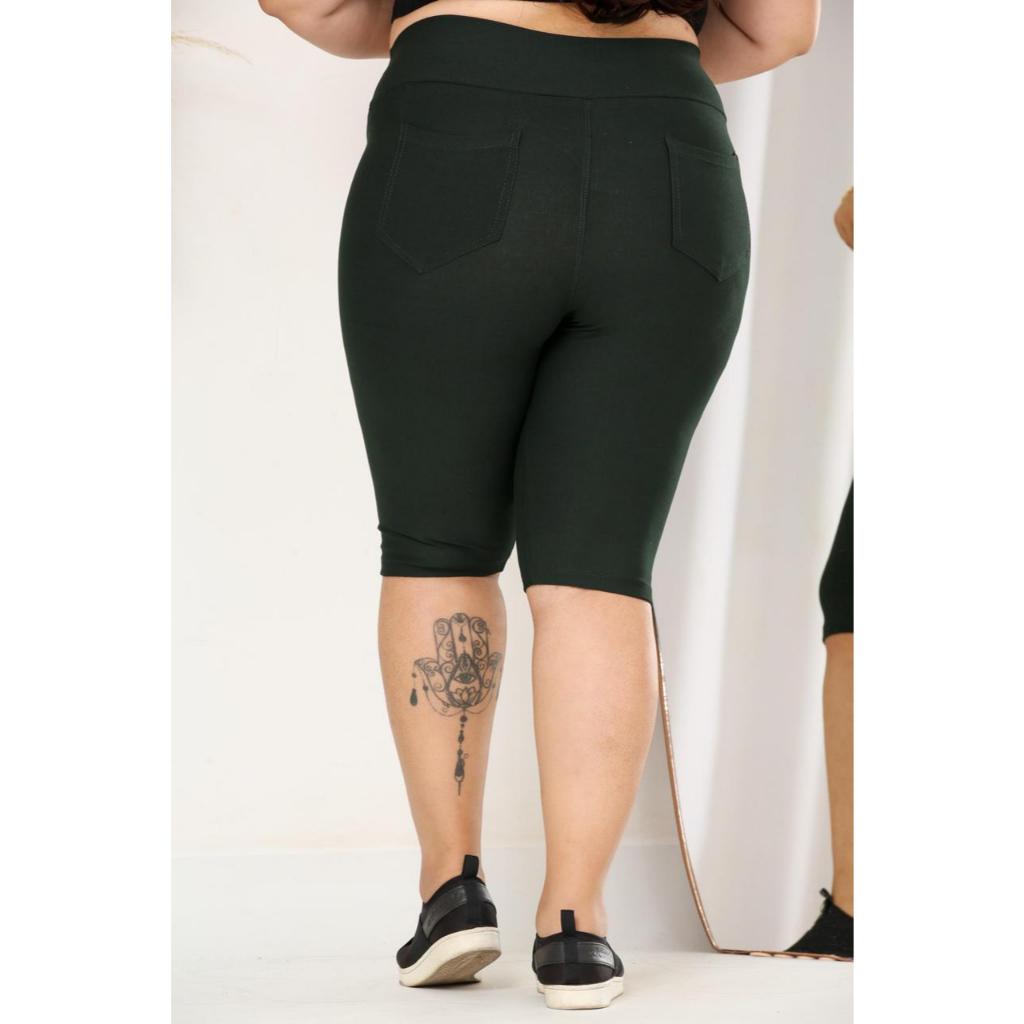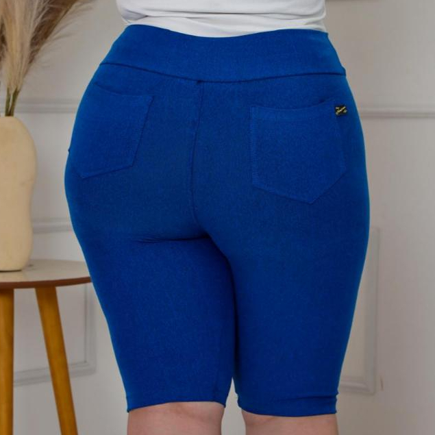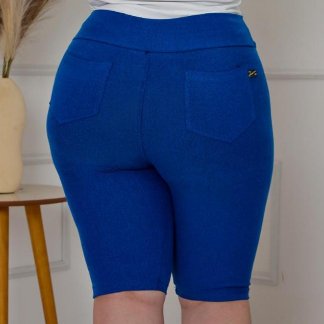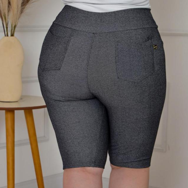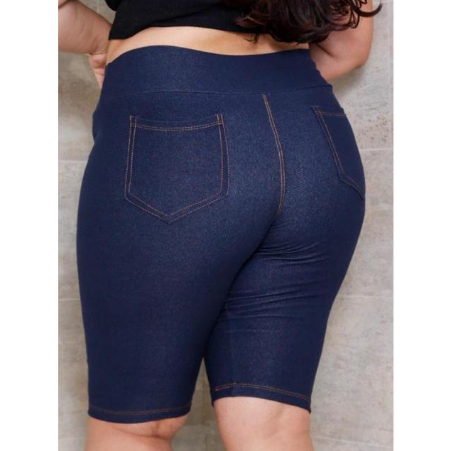 Bermudas plus G1 G2 G3 Malha jeans cintura alta comprimento no joelho com elastano