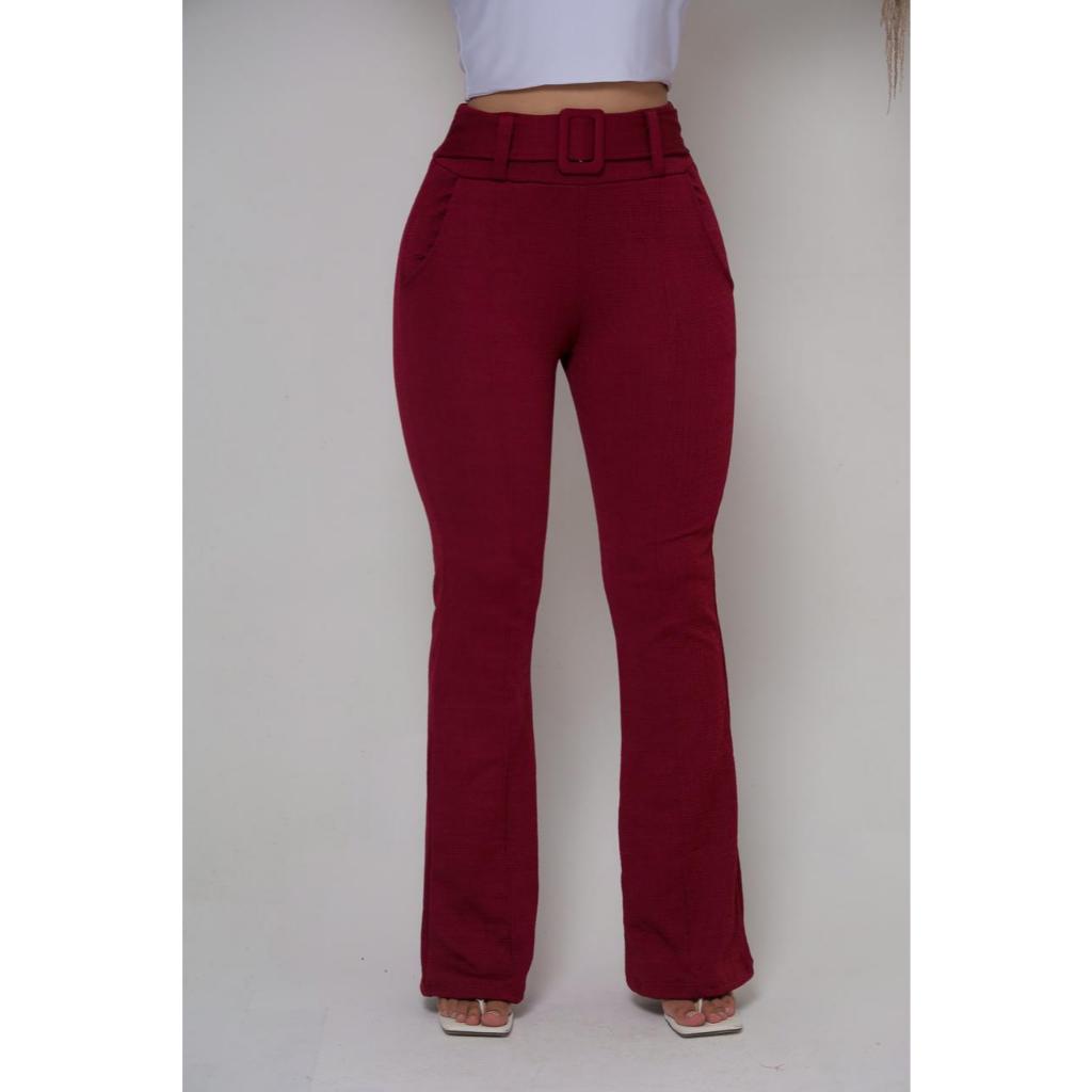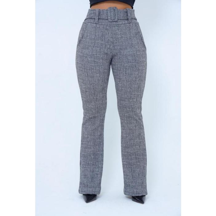 CALÇA FLARE JACQUARD LINHO COM CINTO FIXO NA PEÇA CINTURA ALTA