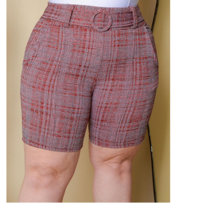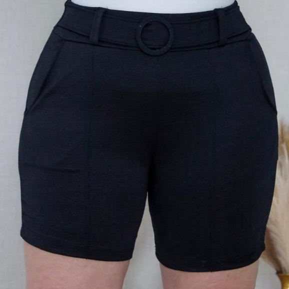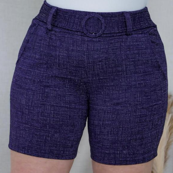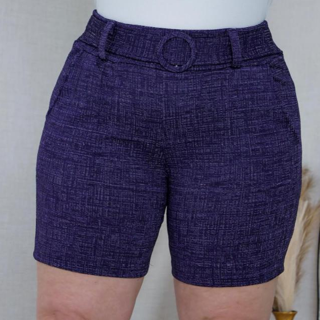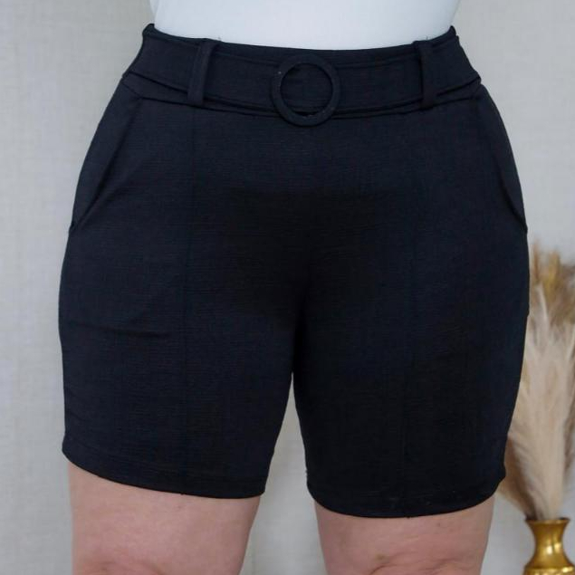 Shorts feminina plus Size jackar linho mesclado com cinto fixo