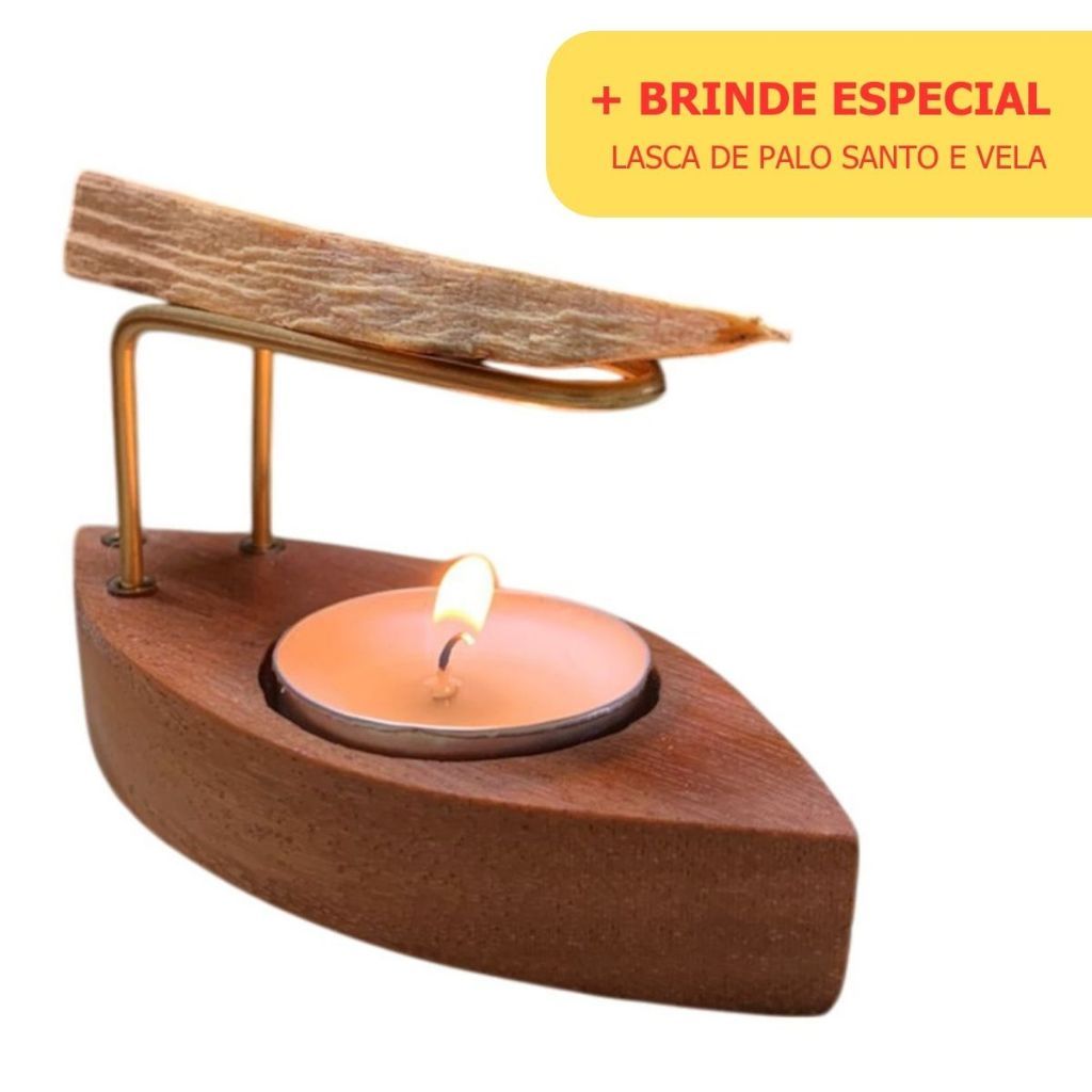 Porta Palo Santo Incensário + 1 vela + lasca de Palo Santo