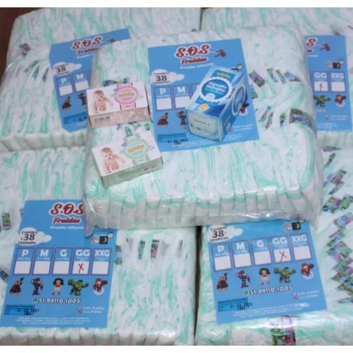 5 Pacotões Fraldas Infantil P (200 un)/M (200 un)/G (200 un)/GG 190 un)/XXG (180 un ) + Algodão em Rolo 25g + 2 Sabonet