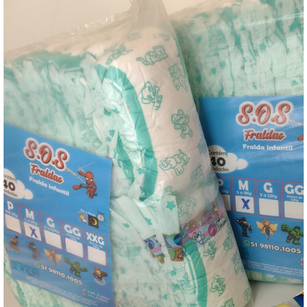 Pacotão Fraldas Adesivas Infantil Alta absorção (Qualquer Tamanho) P 40un /M 40un /G 40un /GG 38un /XXG 36un