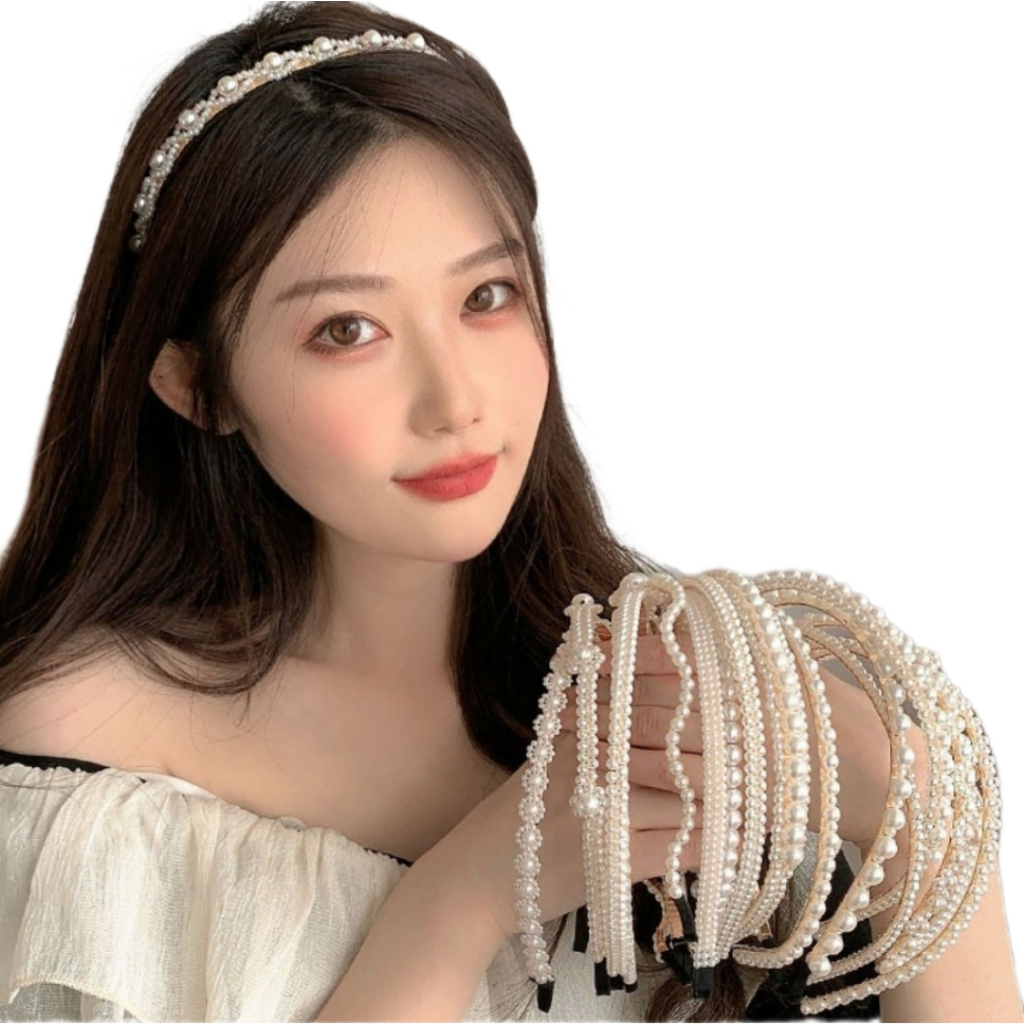 kits 3/6/12 Tiaras Arquinho De Pérolas branco Para Cabelo Sortido