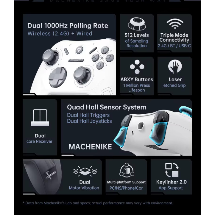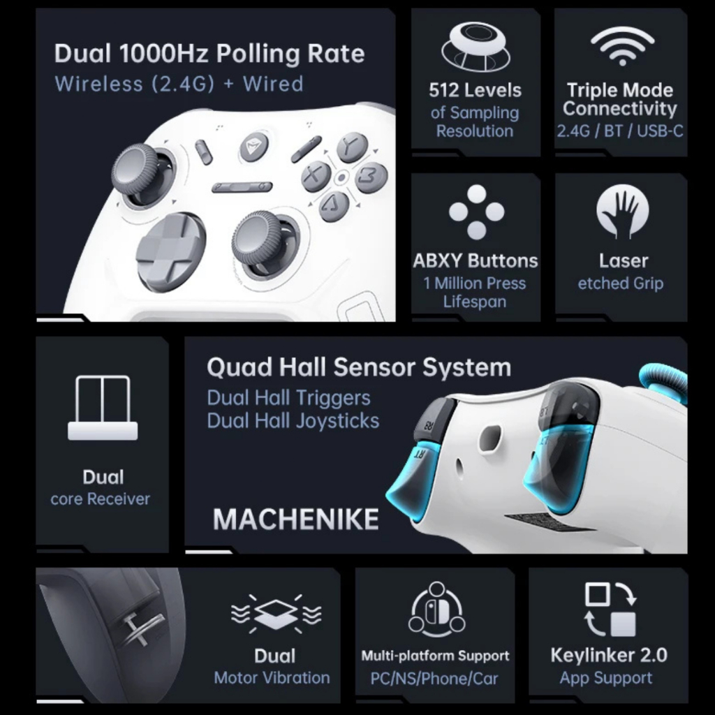 Controle Bluetooth Gamer MACHENIKE G1 Hall Efeito Gatilho