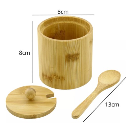 Saleiro de Madeira Açucareiro de Bambu com Tampa e Colher Pote de Bambu Cozinha 200ml