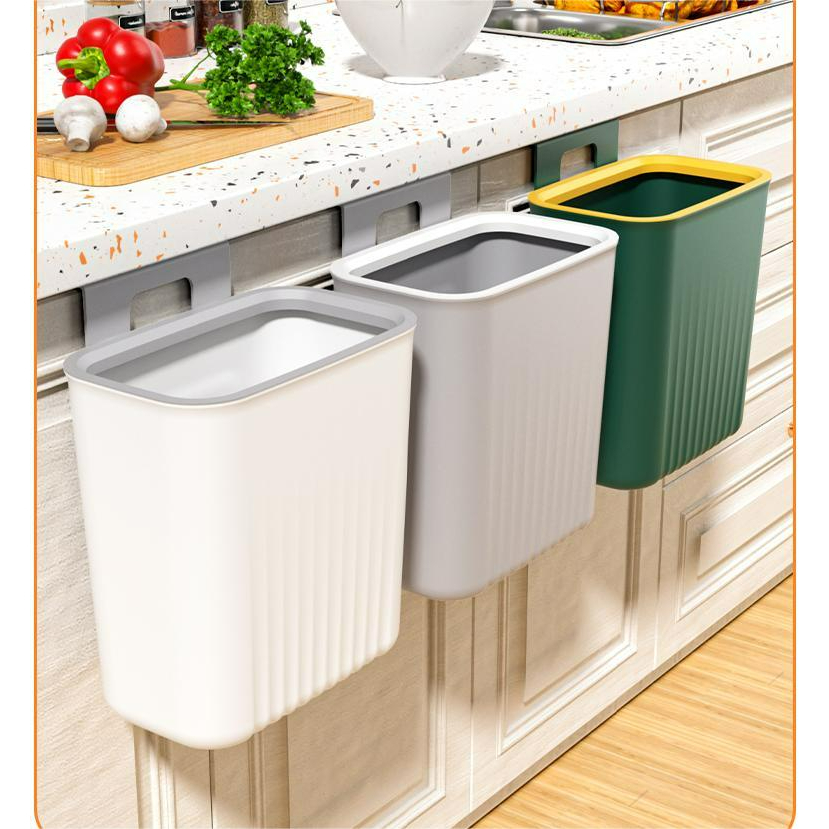 9 L wall mounted lixeira com tampa cozinha lata de lixo porta do armário pendurado para