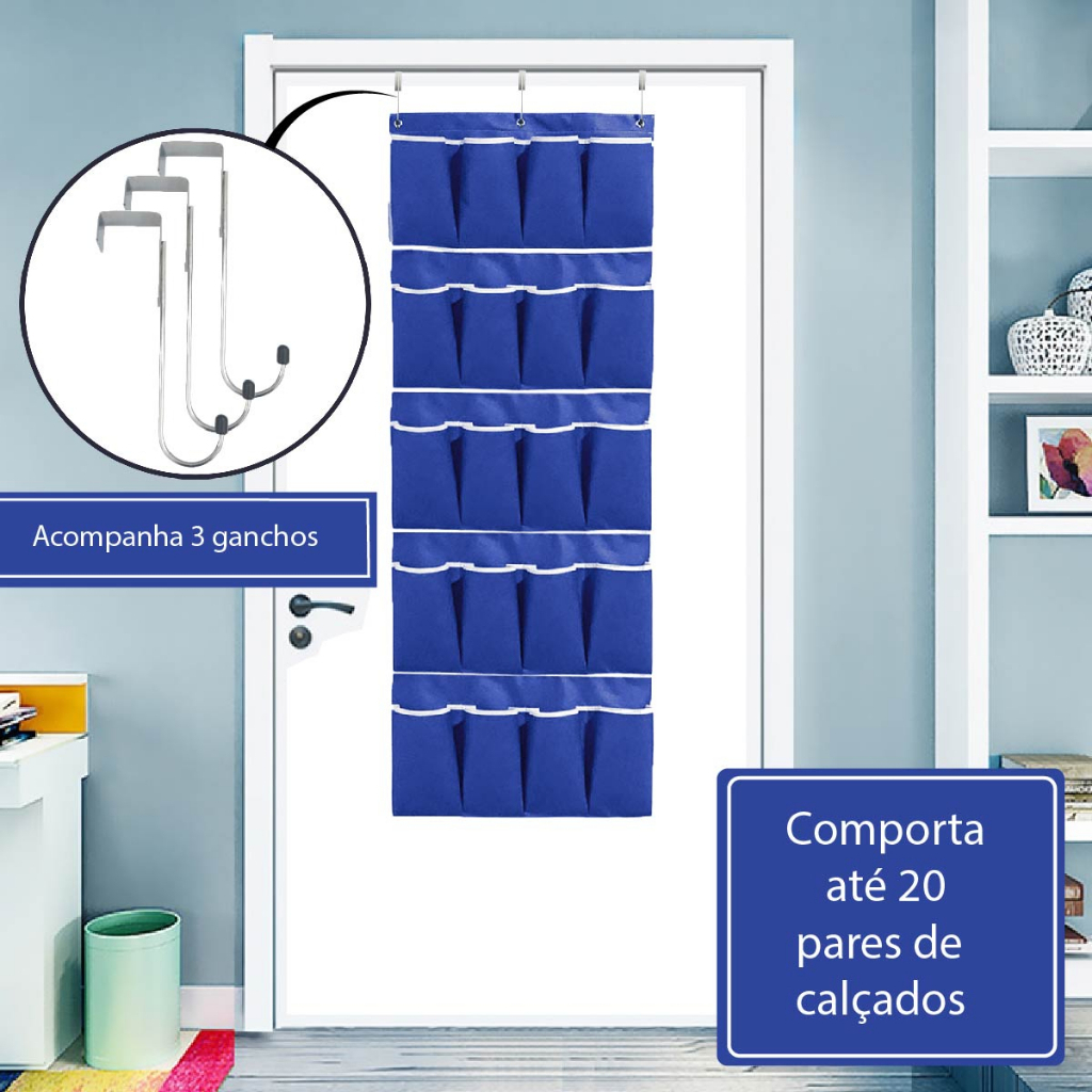 Sapateira Organizadora 20 Divisórias Multiuso em TNT Dobrável Vertical Suspenso Multiuso De Calçados
