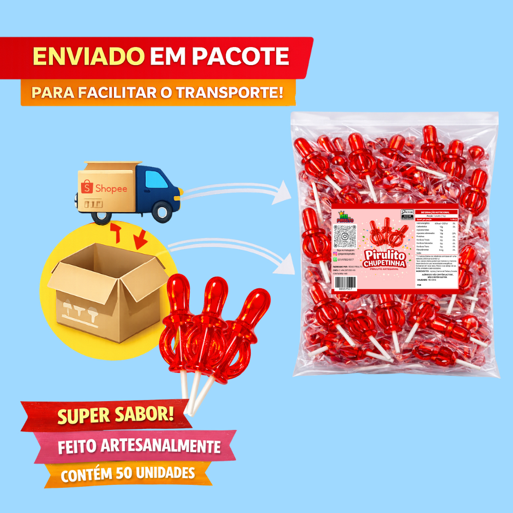 Pirulito Chupeta - Chupetinha Vermelho com 10 Unidades - Rei do Pirulito