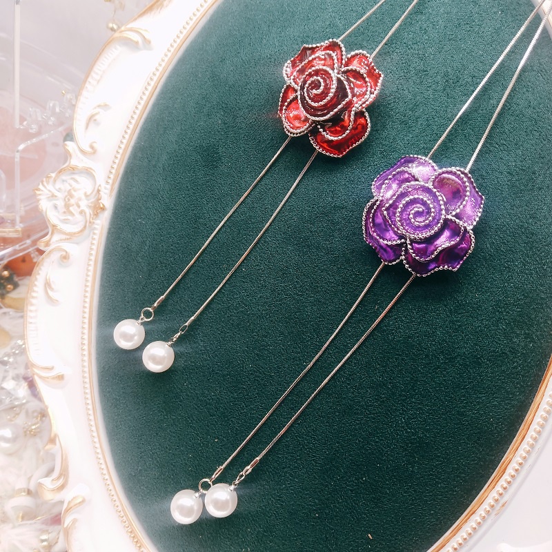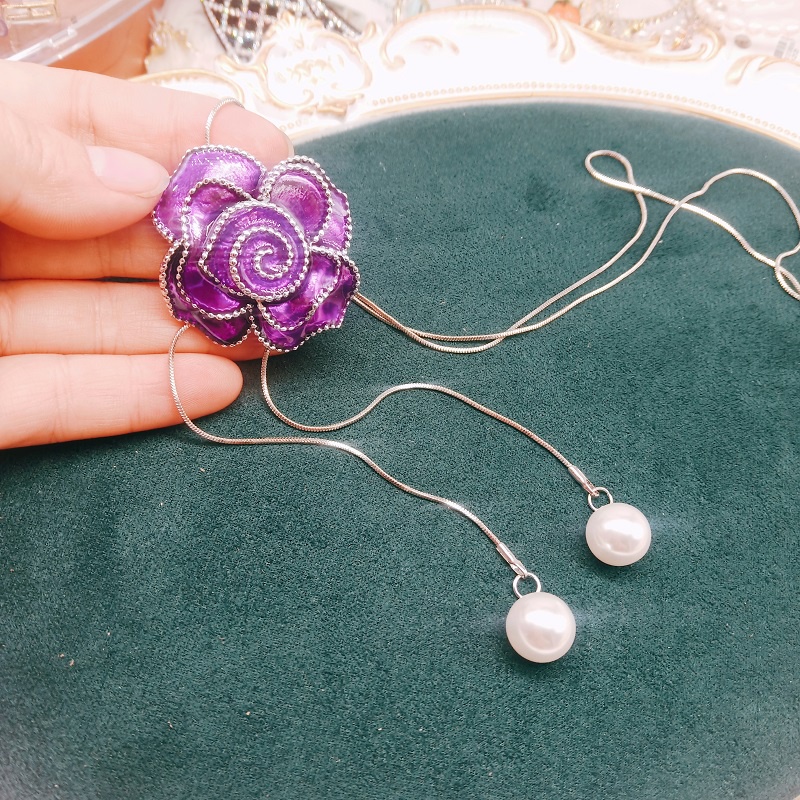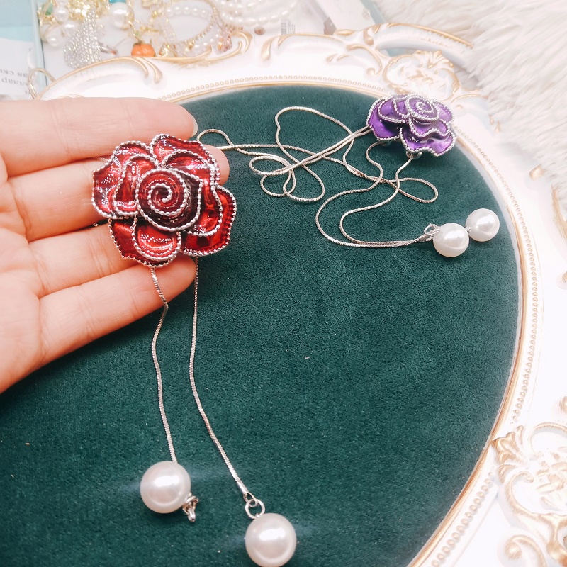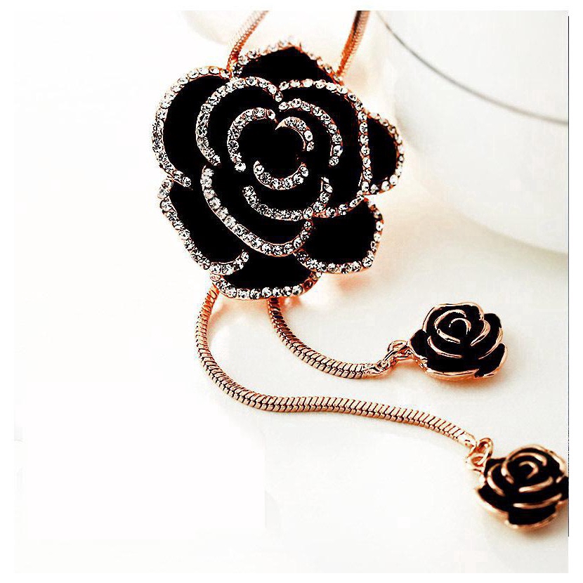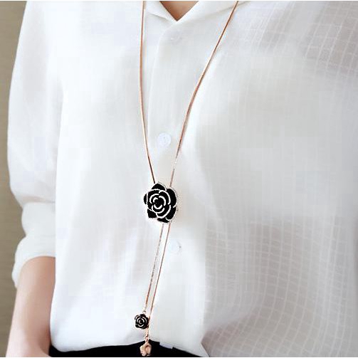 Vintage Black Rose Flor Tassel Longos Colares & Pingentes Para Mulheres Clássico Moda Jóias Camisola Colar De