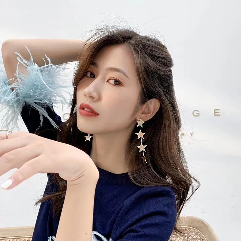 Brincos Femininos Longos Com Estrelas Várias Camadas De Ouro Etrendy