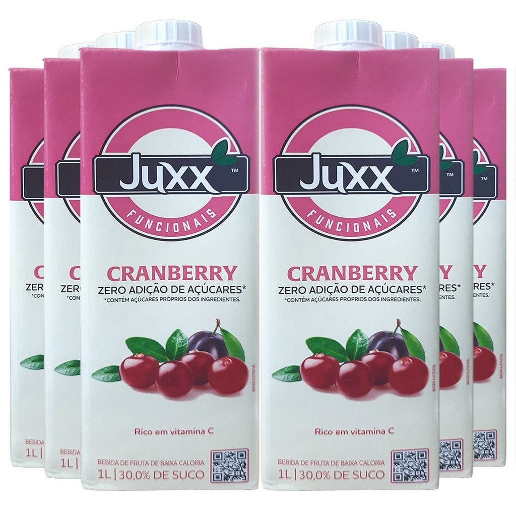 Suco Juxx Cranberry Zero Açúcar 1 Litro - Caixa 6 Unidades