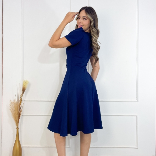 Vestido no Crepe de Malha Evasê Midi Moda Versátil para Todas as Ocasiões