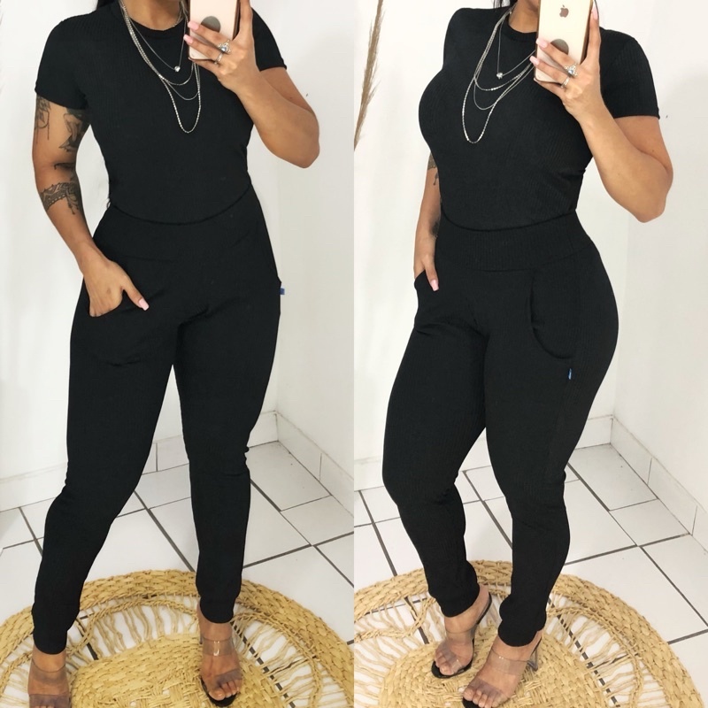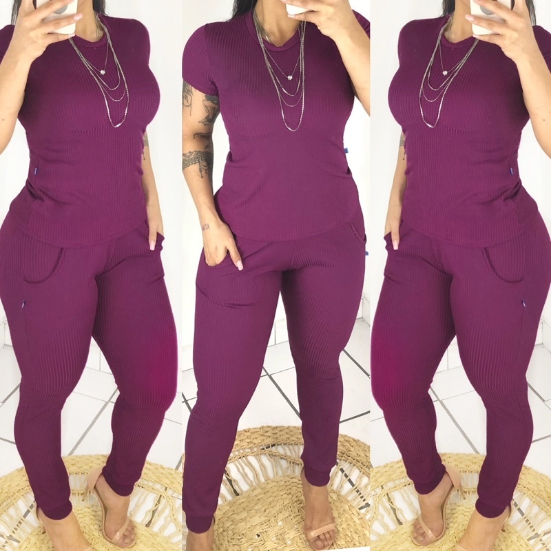 Conjunto canelado calça Jogger e blusa tendencias Blogueira