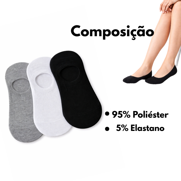 Kit Pares de Meias Sapatilha Silicone Invisível Conforto Total