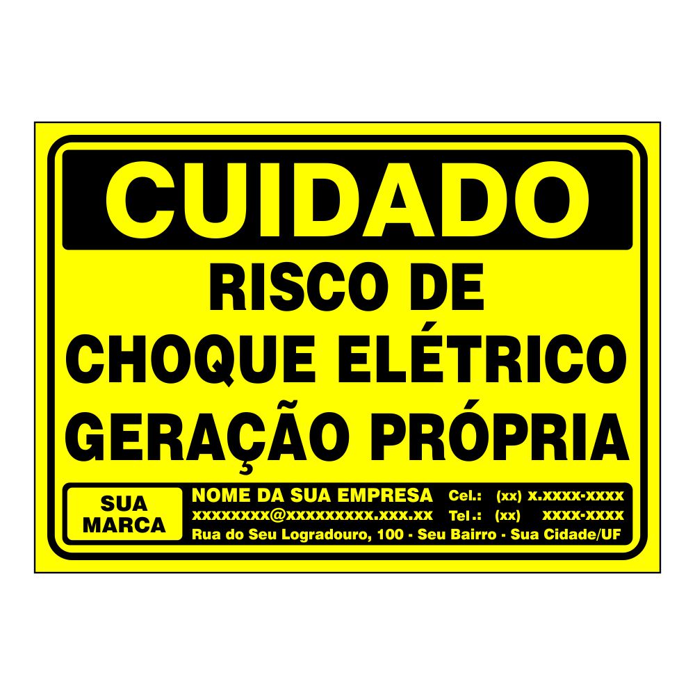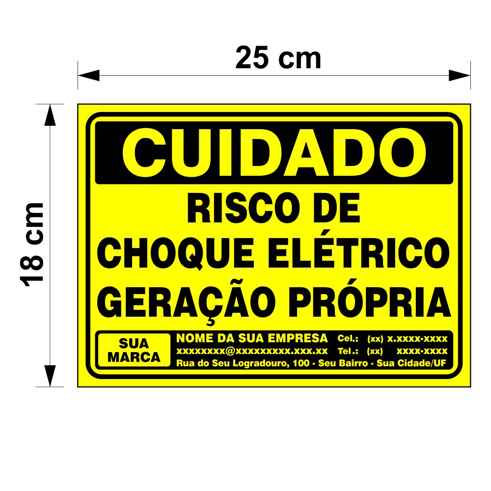 Kit 40 Placas Personalizadas Risco de Choque Geração Própria Energia Solar Personalizada 18cm x 25cm Formato Retangular
