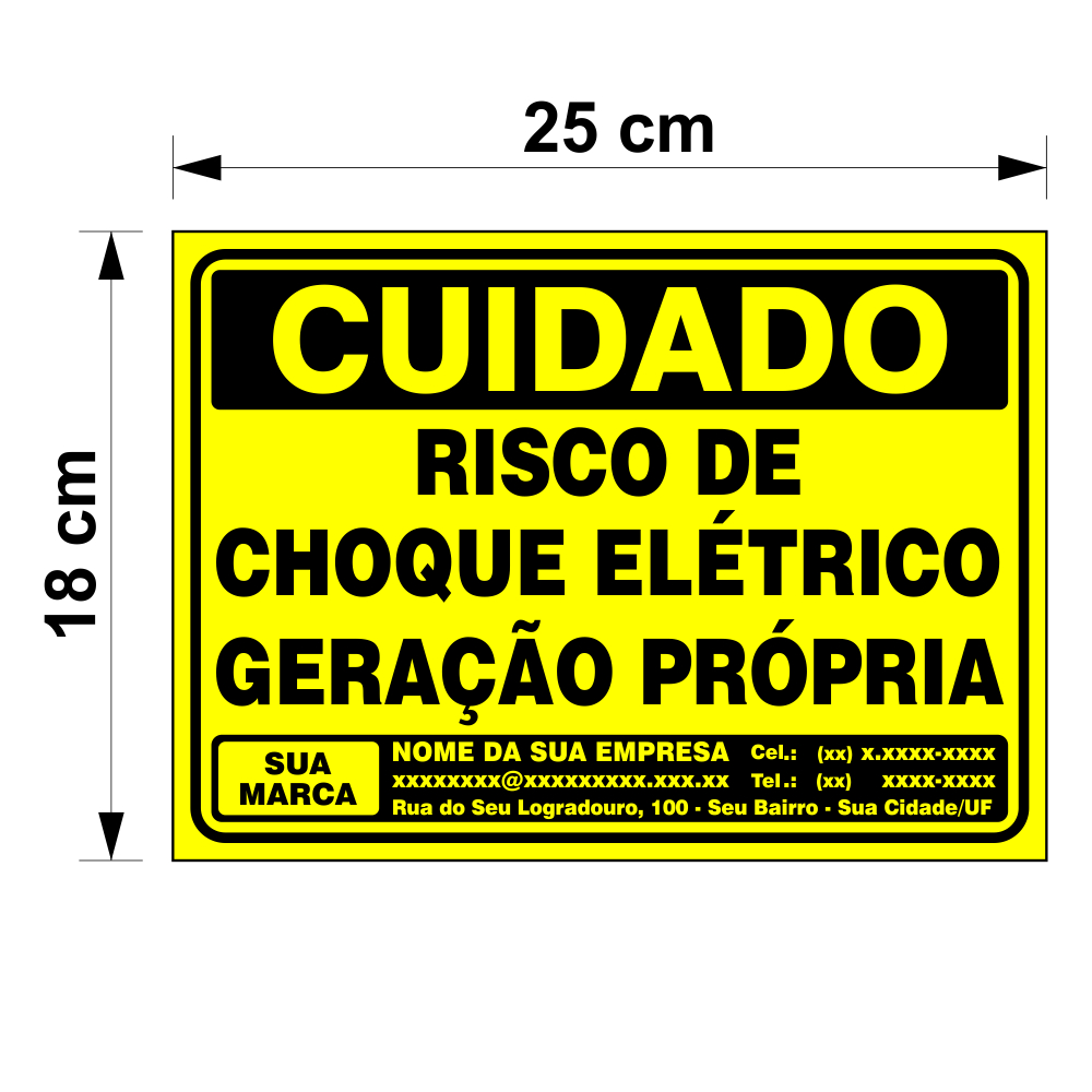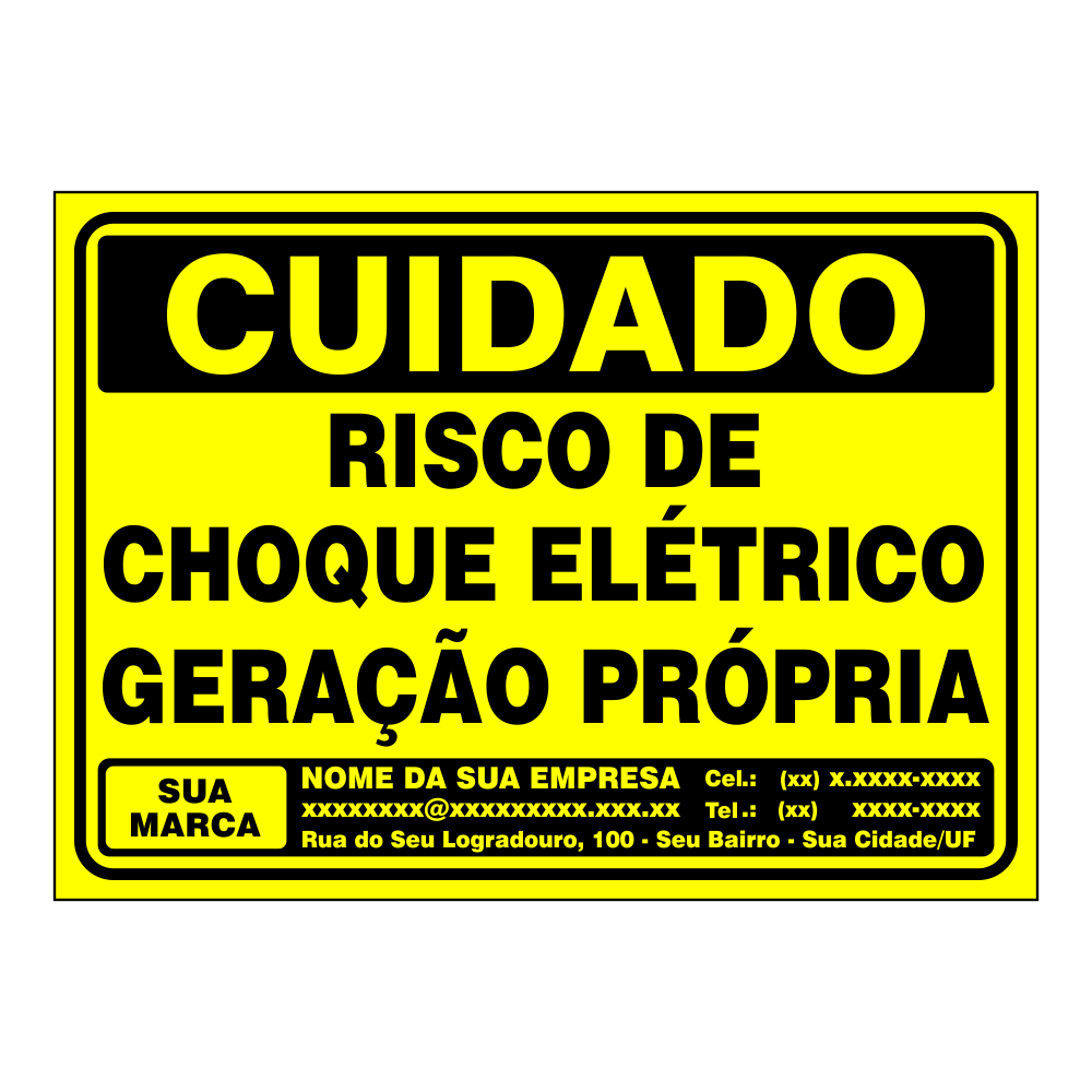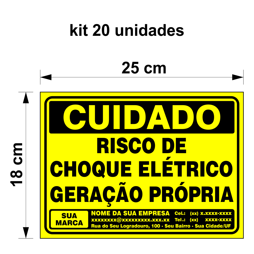 Kit 20 Placas Personalizadas Risco de Choque - Geração Própria Energia Solar Personalizada - 18x25cm