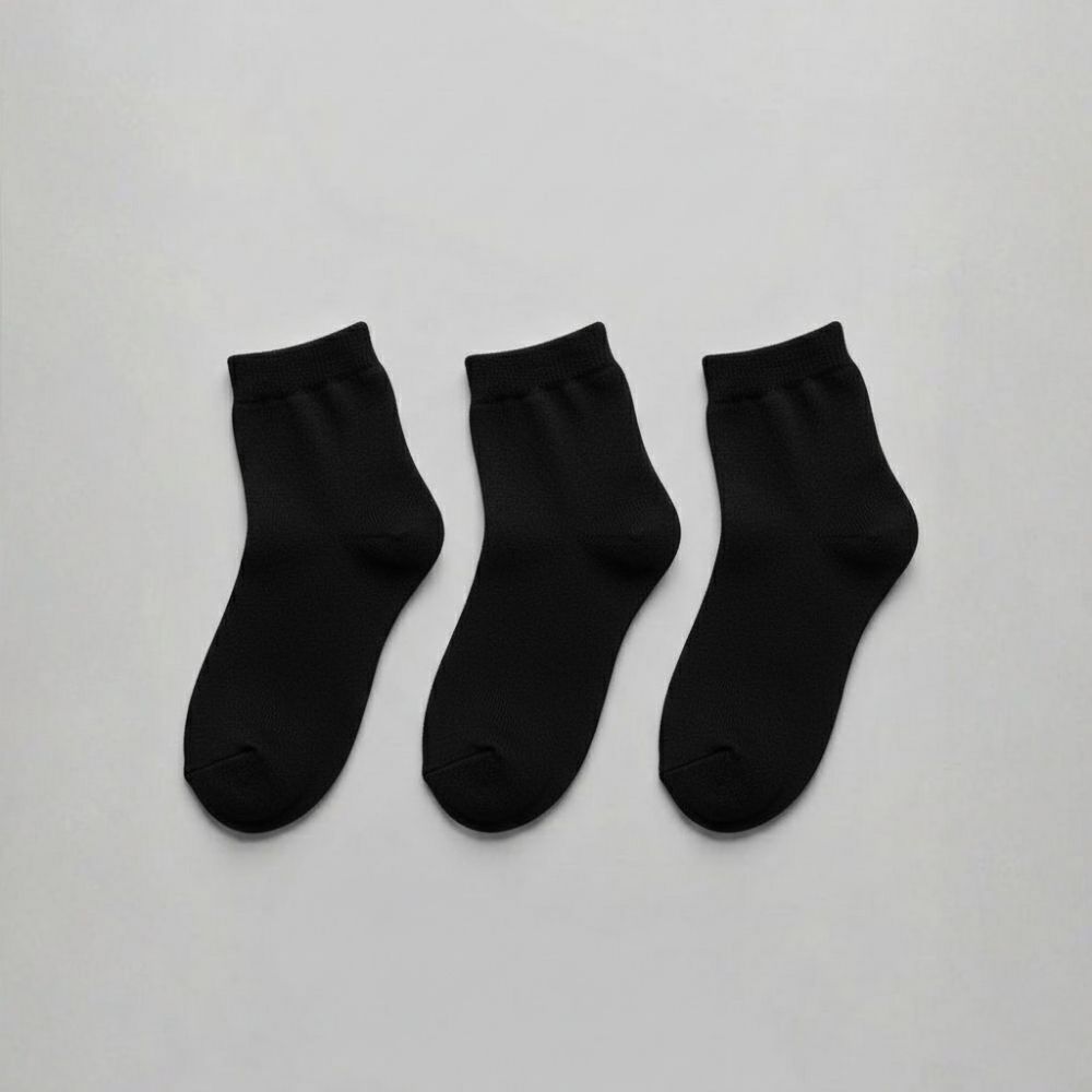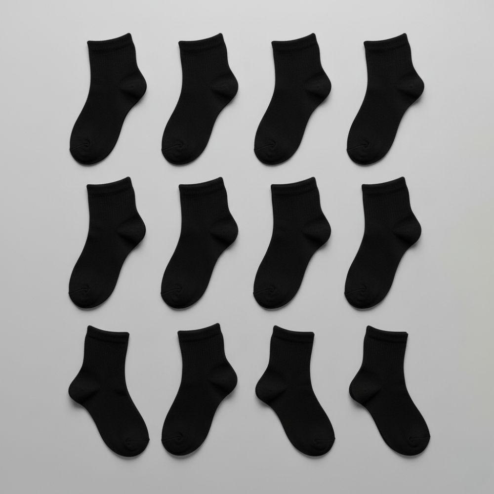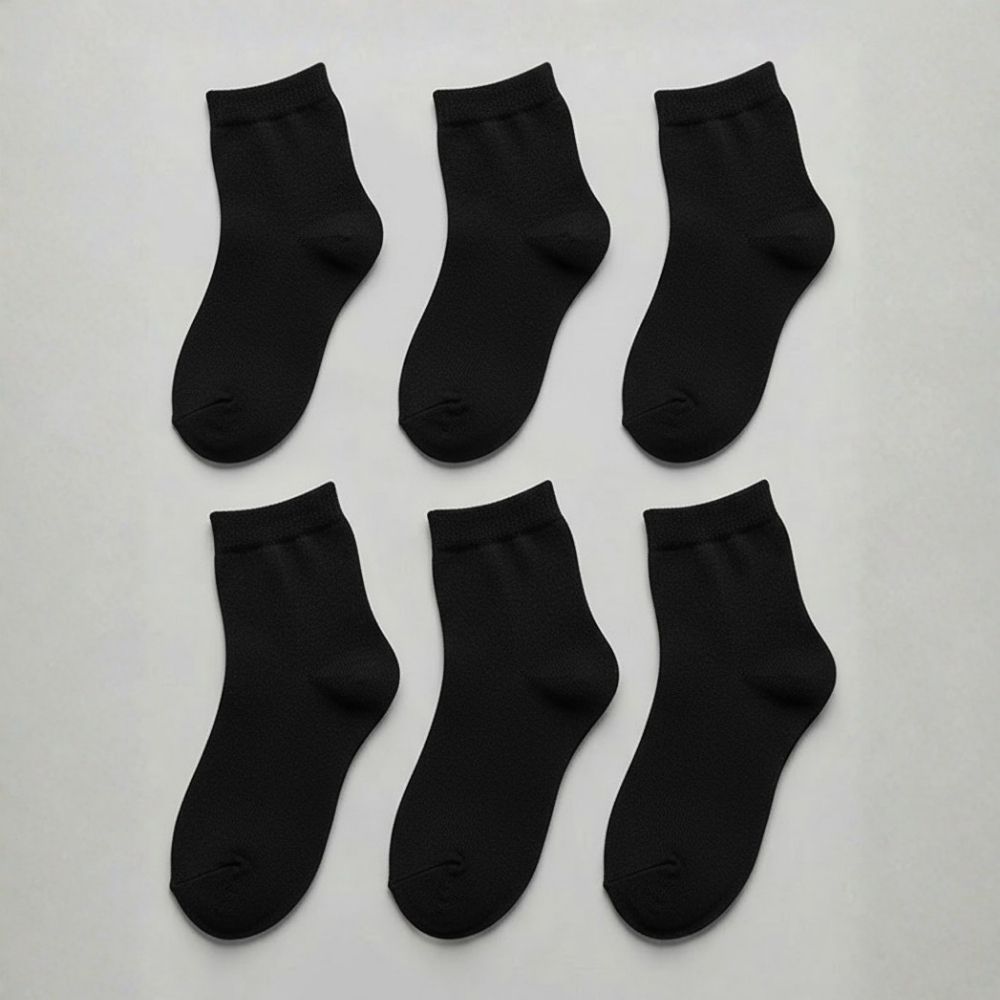 Kit de 3 Até 12 Pares de Meias Pretas Infantil Algodão Unissex Colegial Escolar
