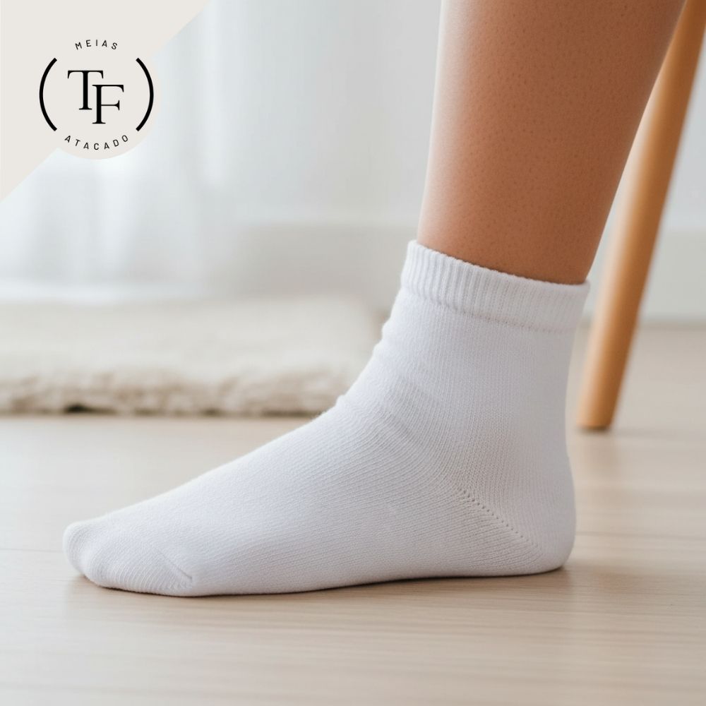 Kit De 3 Até 12 Pares Meia Infantil Branca Preta Escolar Colegial Algodão Menina Menino