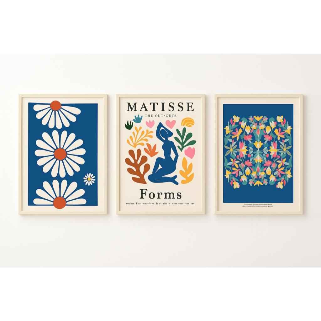 Quadro decorativo 3 peças Matisse Azul flores coloridas decoraçao quarto sala interiores