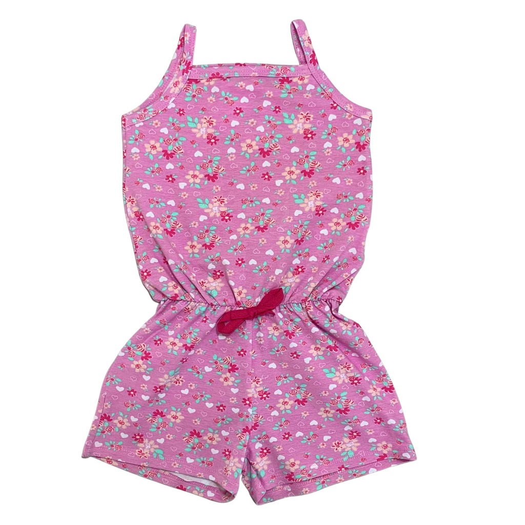 Macaquinho infantil cotton estampado com elastico na cintura e alça 1-2-3-4-6-8