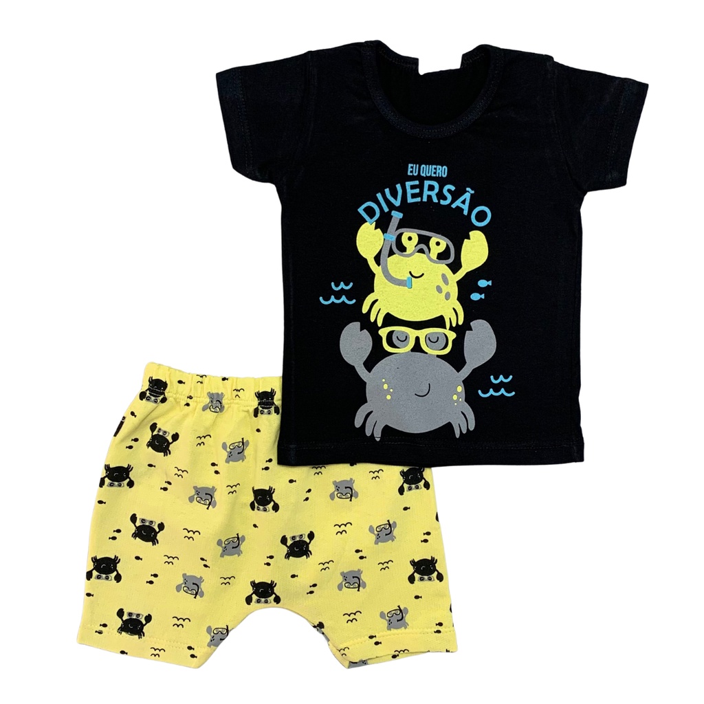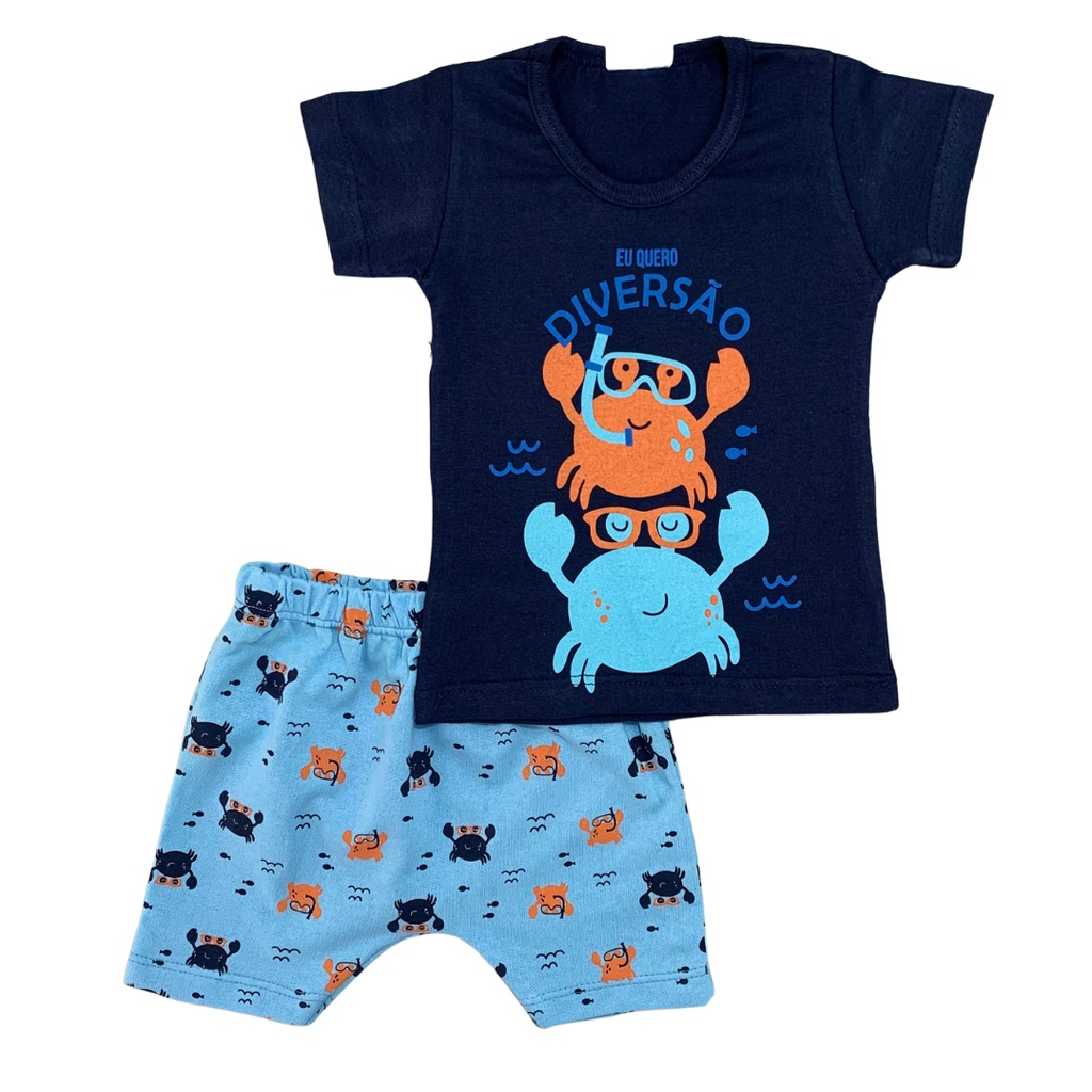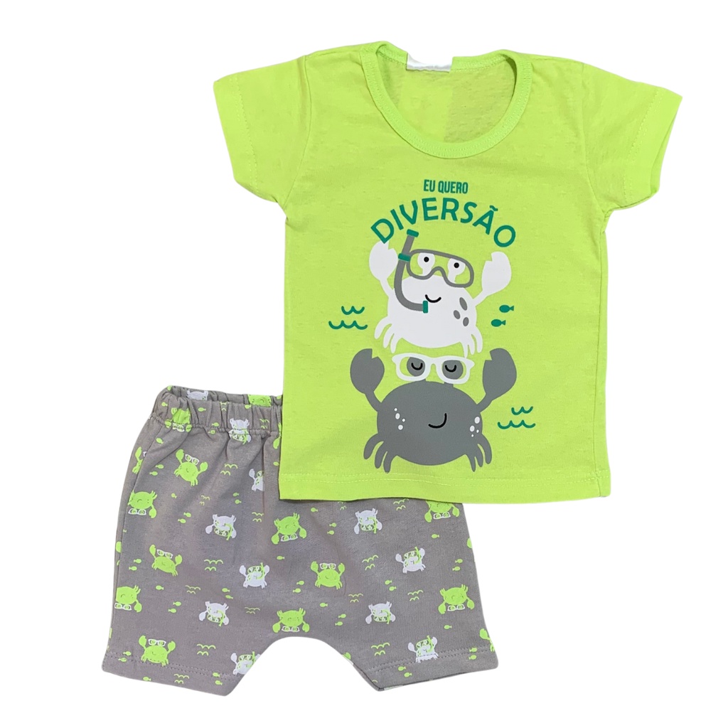 Conjunto bebe masculino com manga bermuda moletinho e camiseta malha P-M-G