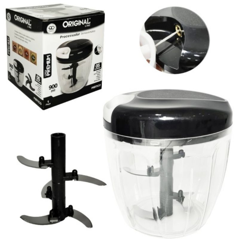 Processador Manual De Alimentos Grande 5 Lâminas Em Aço inox 900ml Original line