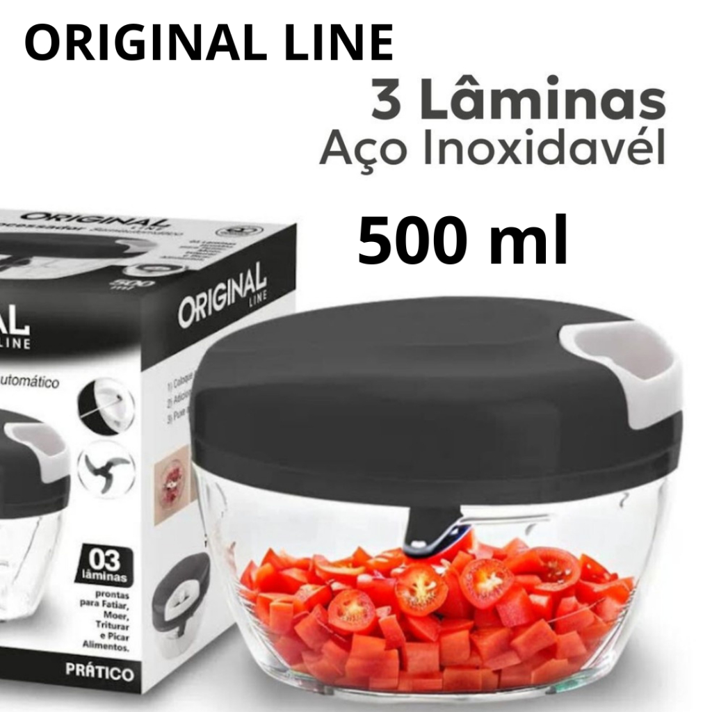 Processador Triturador de 500ML/ Grande de alimentos manual, 3 ORIGINAL LINE