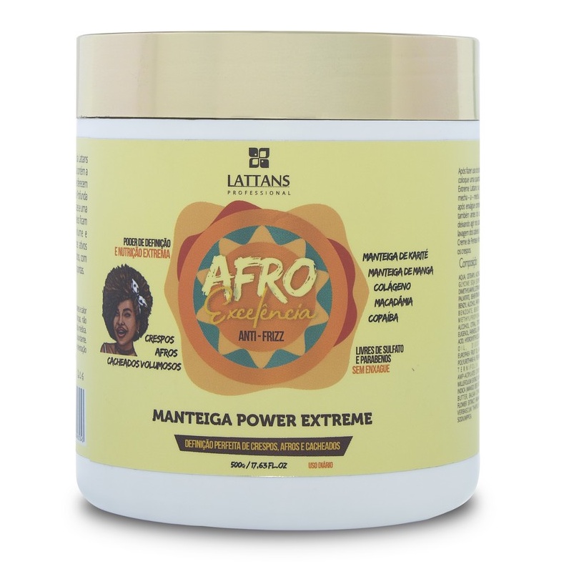 Manteiga Power Extreme Finalizadora Para Cabelos Cacheados e Crespos Afro Excelência Lattans 500g