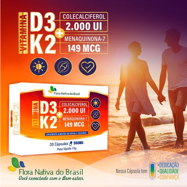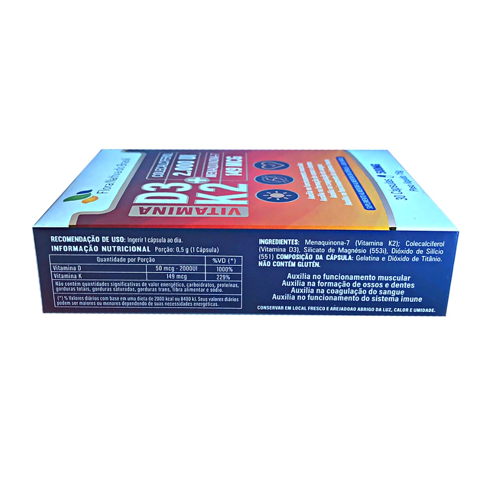 Vitamina D3 + K2 ( Colecalciferol D3 2.000UI + Menaquinona-7 K2 149mcg) 30 CAPS