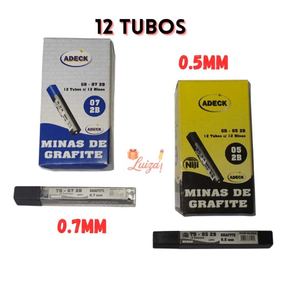 Grafite Adeck Caixa com 12 Tubos de Grafite 0.7 mm ou 0.5 mm | 2B