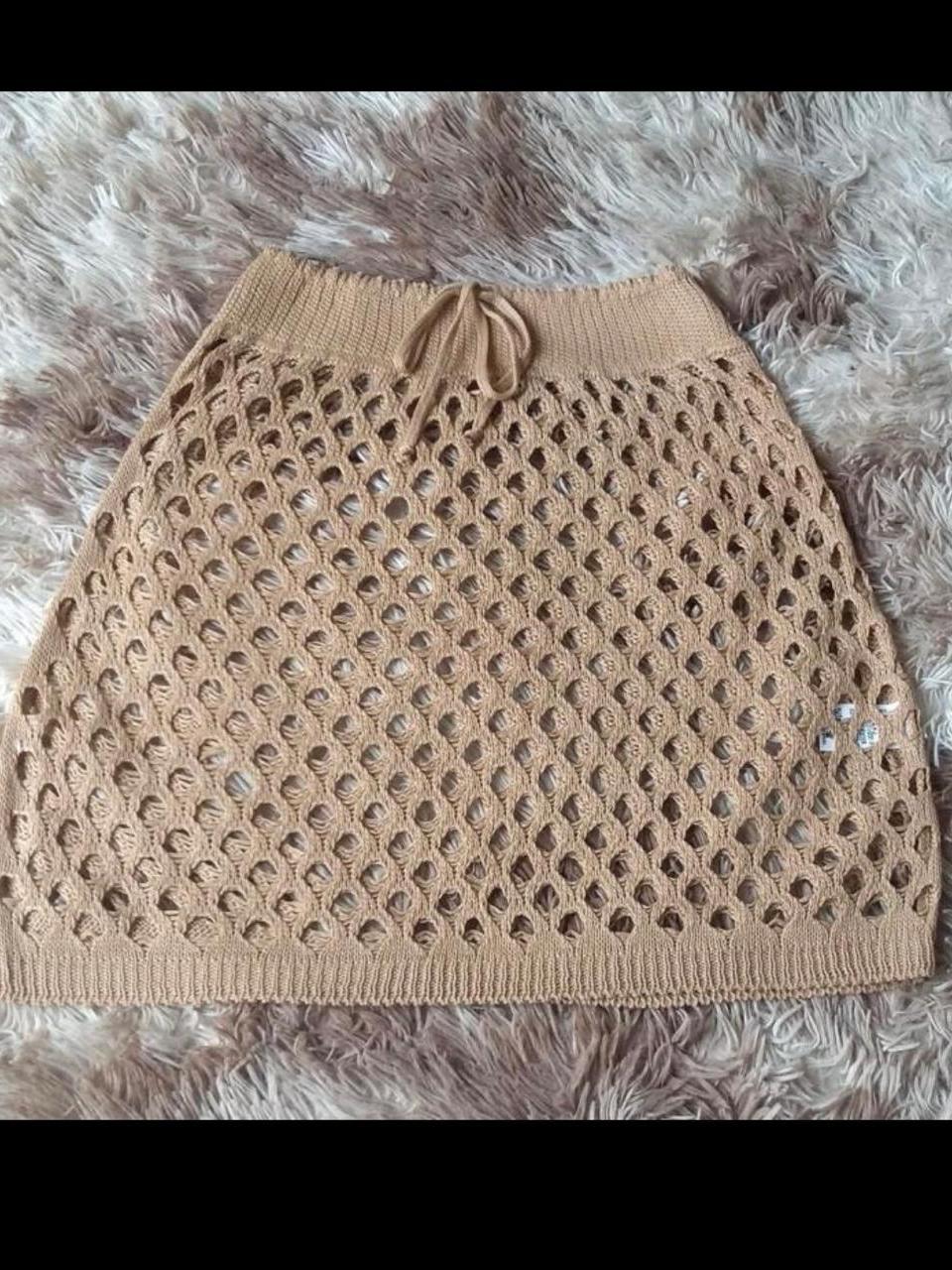 Saia Saída de Praia Saia Curta Tricot Crochê Moda Verão