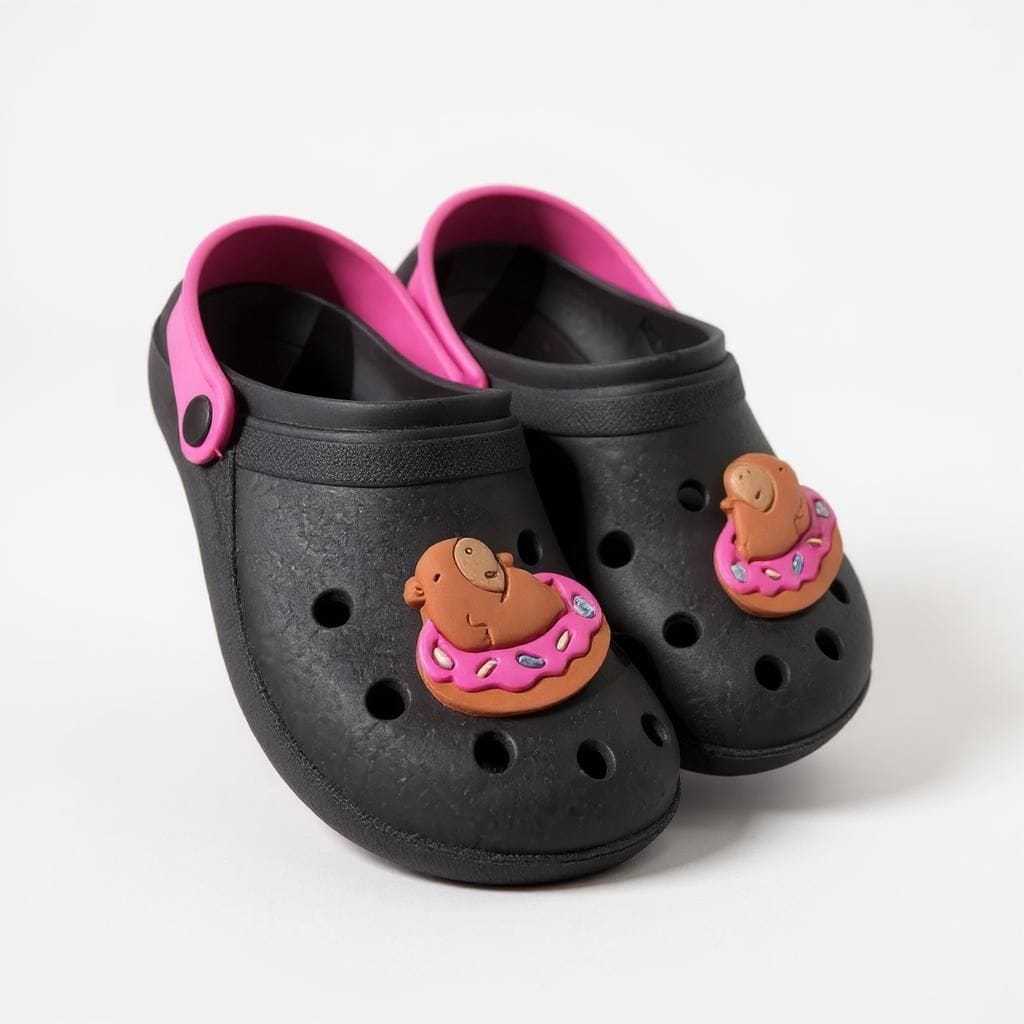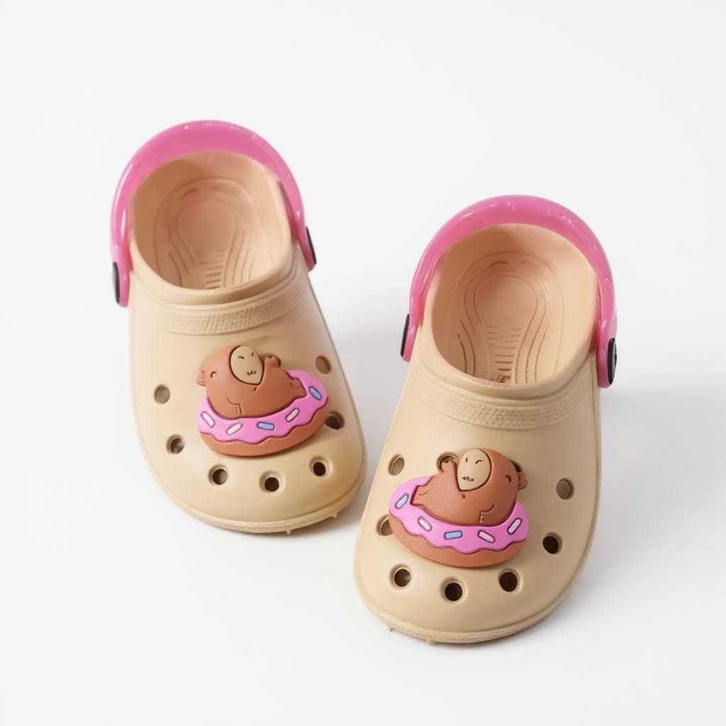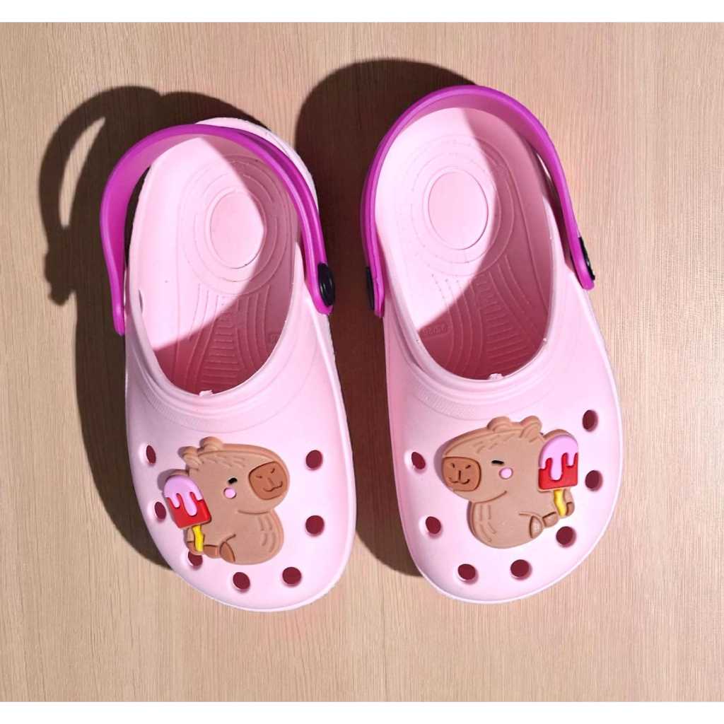 Sandalia infantil Babuche Injetado Personalizado Capivara e Flor Delicado Confortável Macio