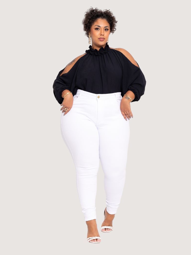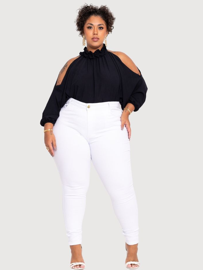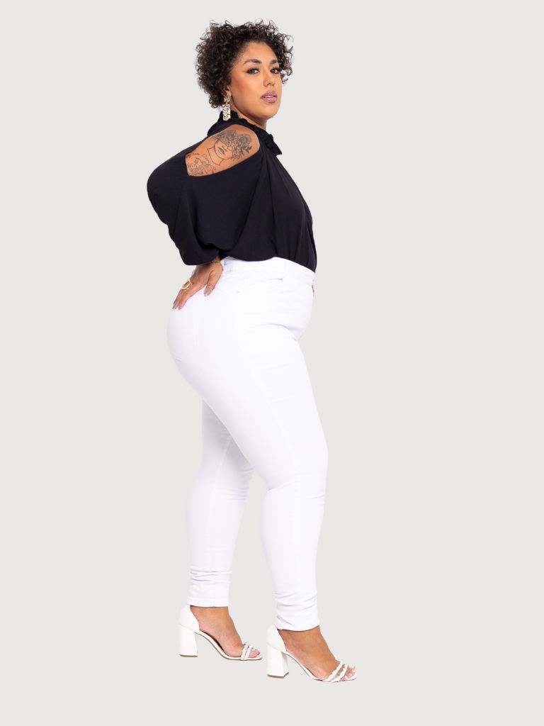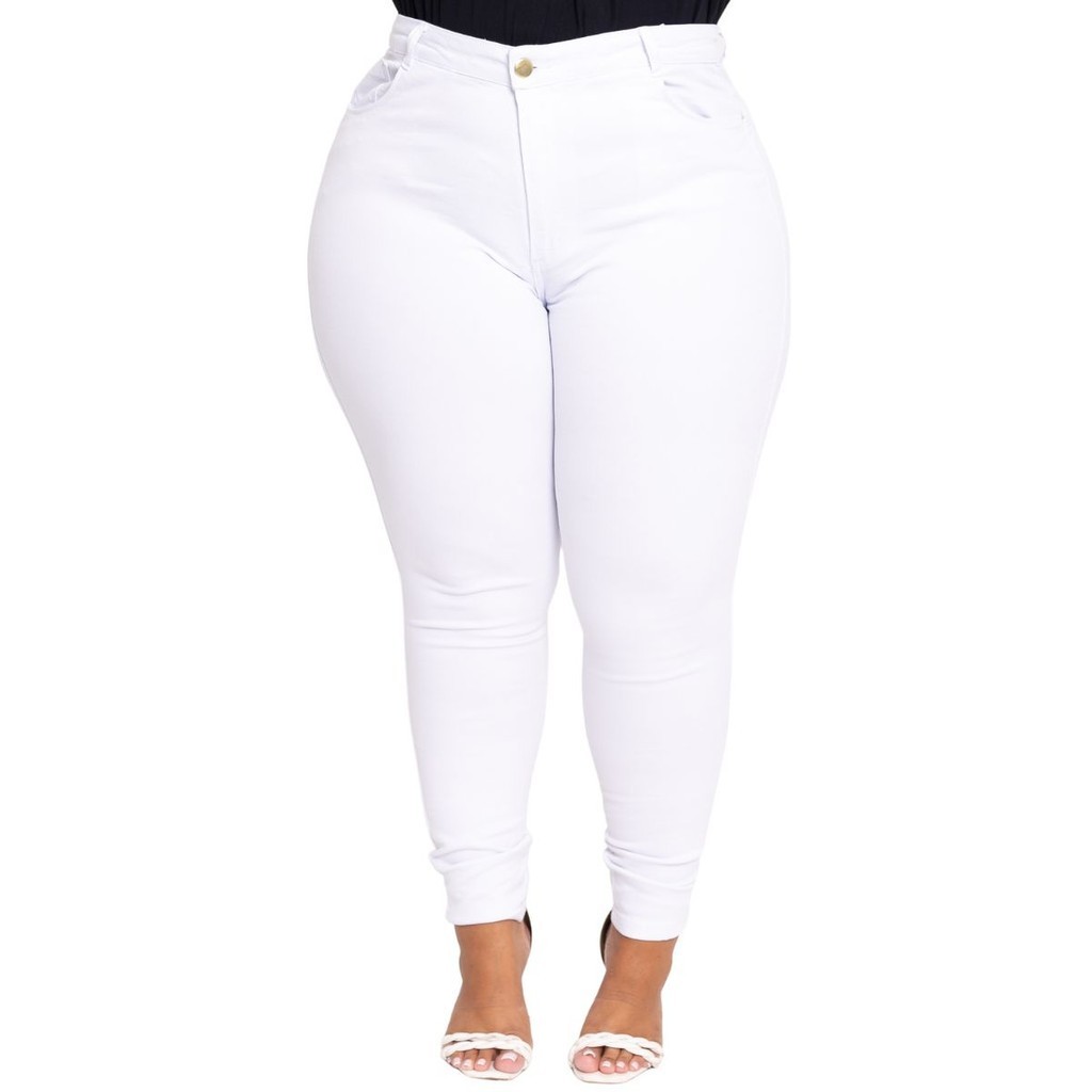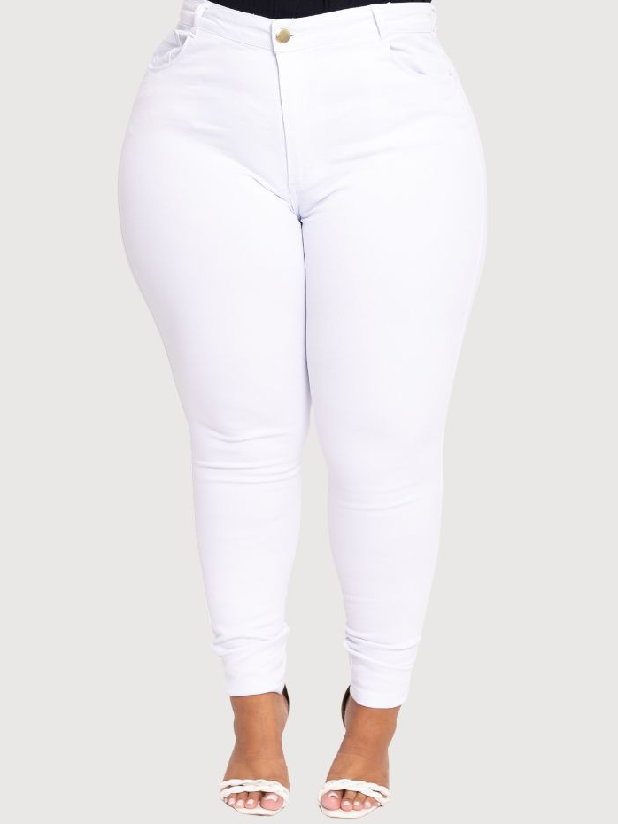 Calça Jeans Plus Size Skinny Branca Levanta BumbumTrabalho Premium