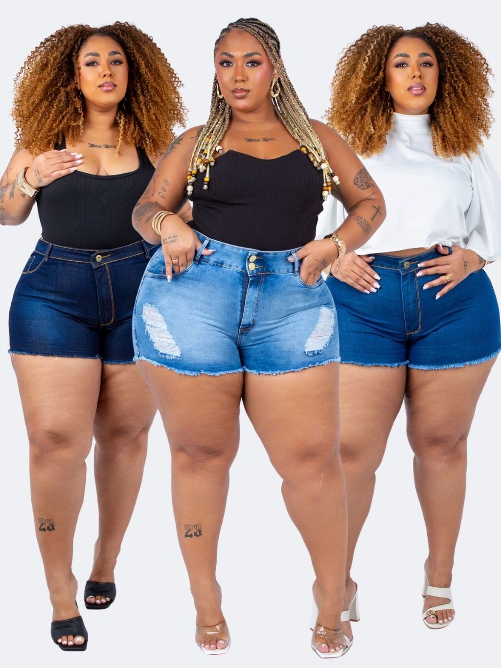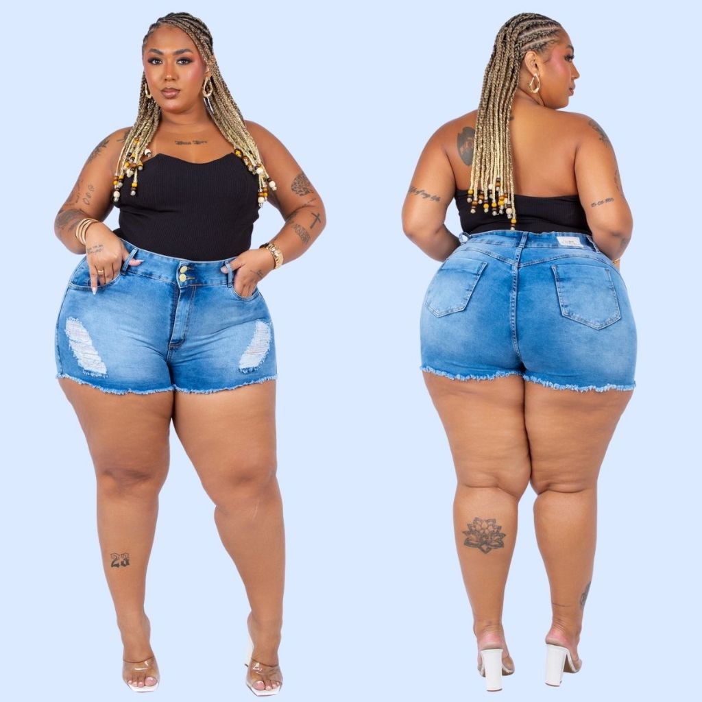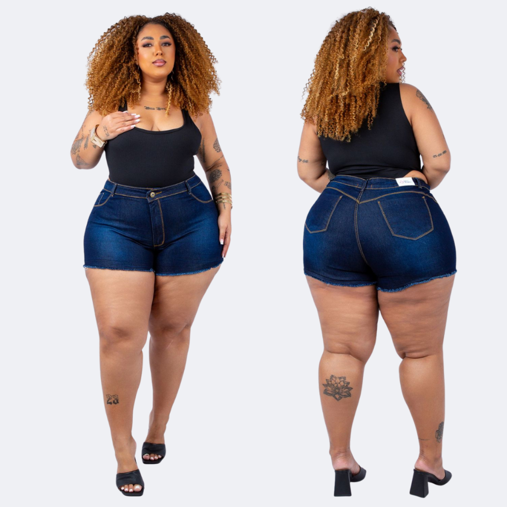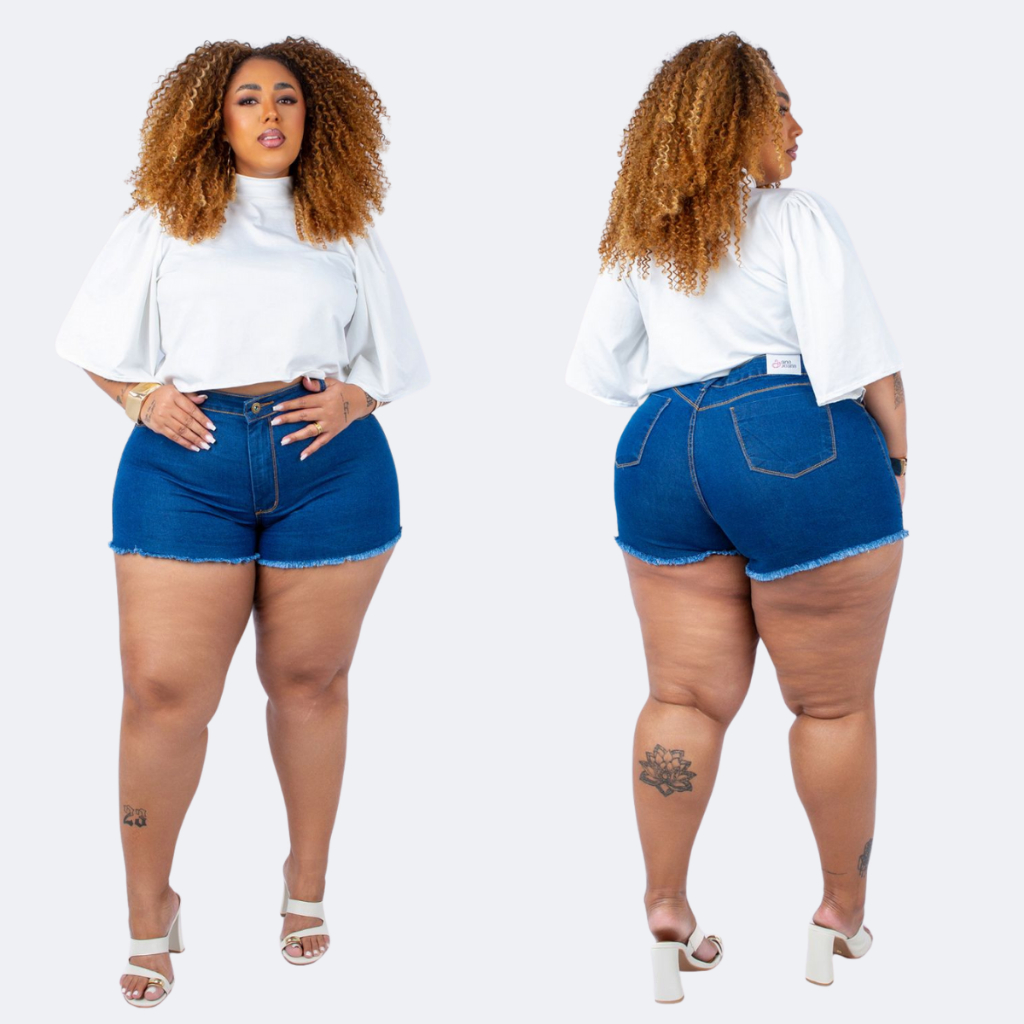 Shorts Jeans Plus Size Curto Barra Desfiada Cintura Alta