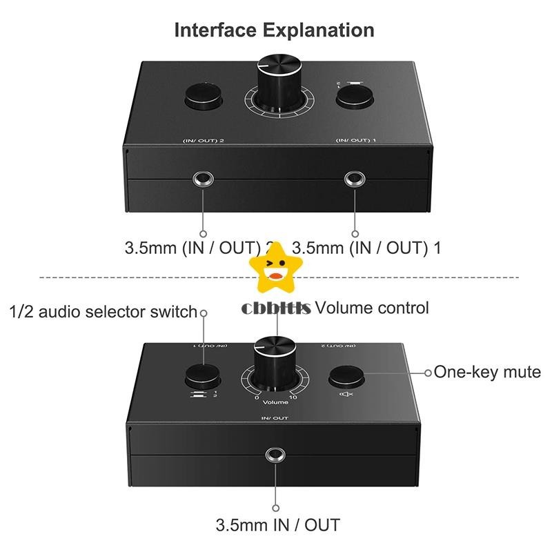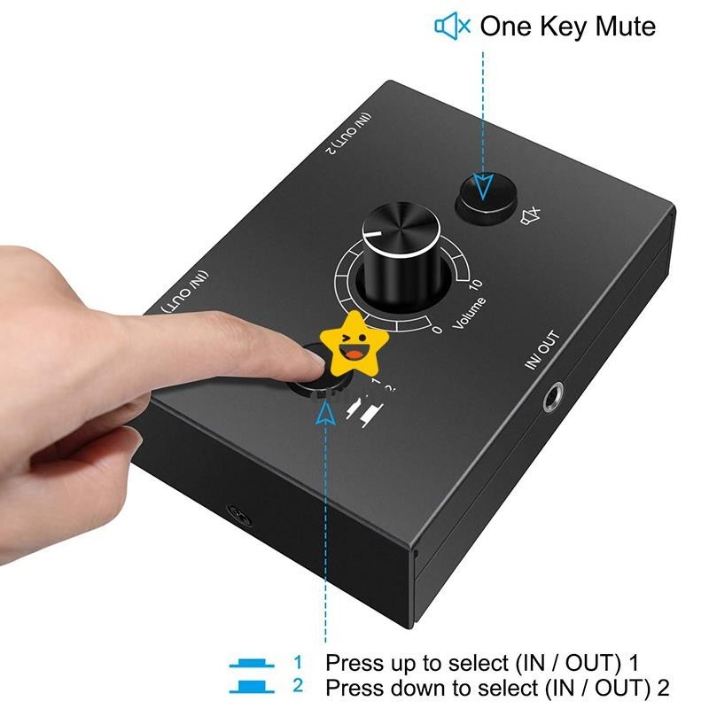 Comutador De Áudio De 3,5mm , 2 Entradas 1 Saídas/1 2 Divisor , Caixa De Botão De Um Chave Mudo