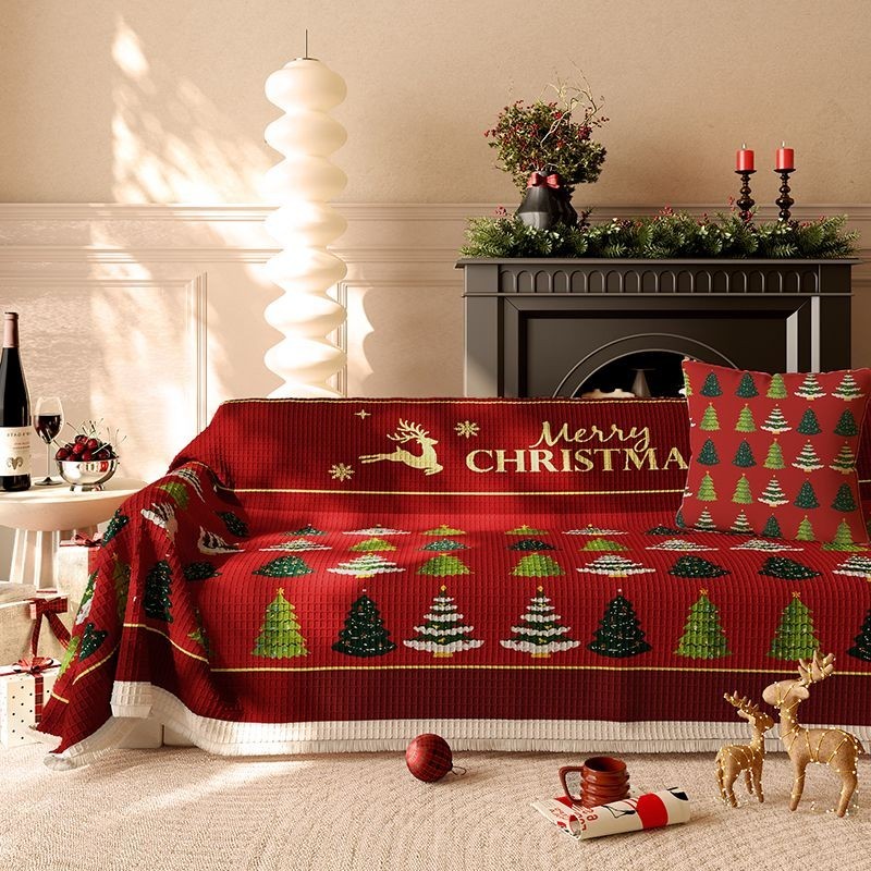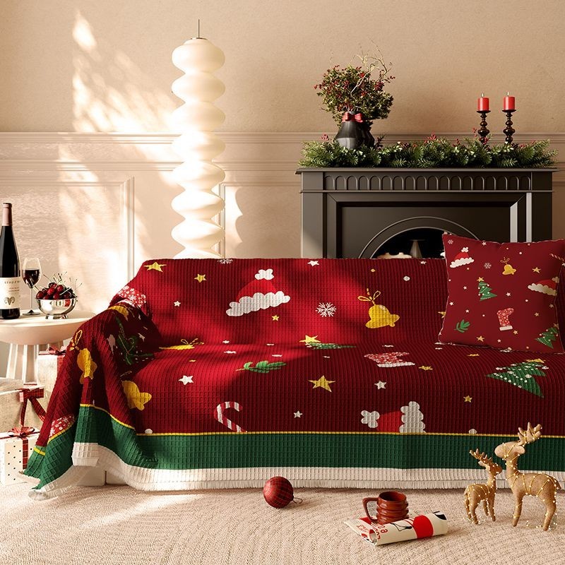 Vermelho natal sofá capa antiderrapante pano aluguel casa capa de pano capa de sofá Universal quatro estações uma peça s