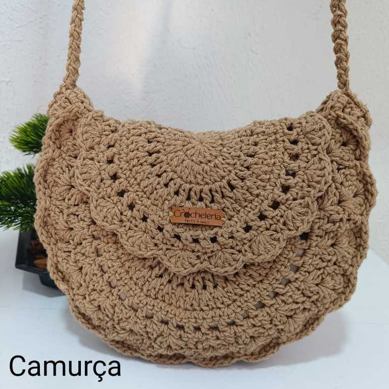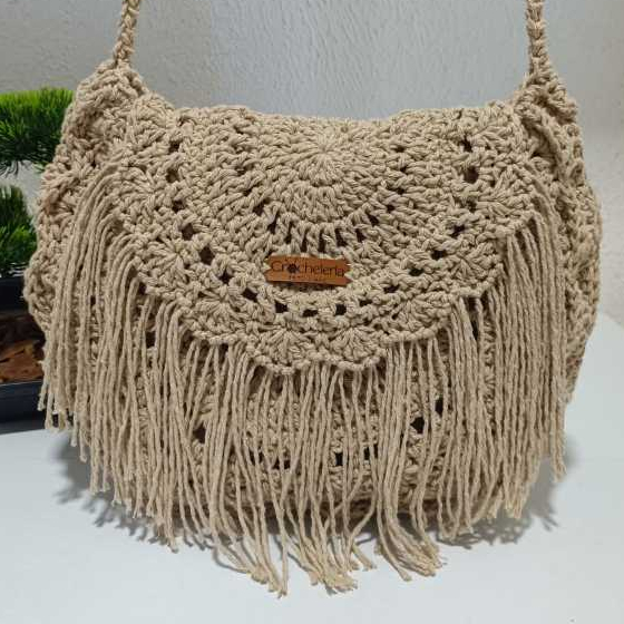 #B06 | Bolsa Boho Chic com ou sem franja feminina artesanal em crochê, feita à mão, sem forro e alça sem regulagem.