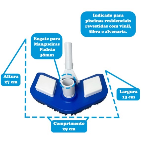 Kit Limpeza Para Piscina Aspirador, Peneira, Escova, Ponteira + 5m de Mangueira e Cabo de 3m