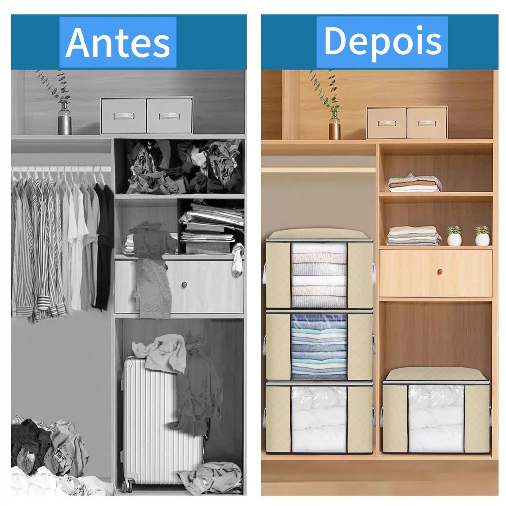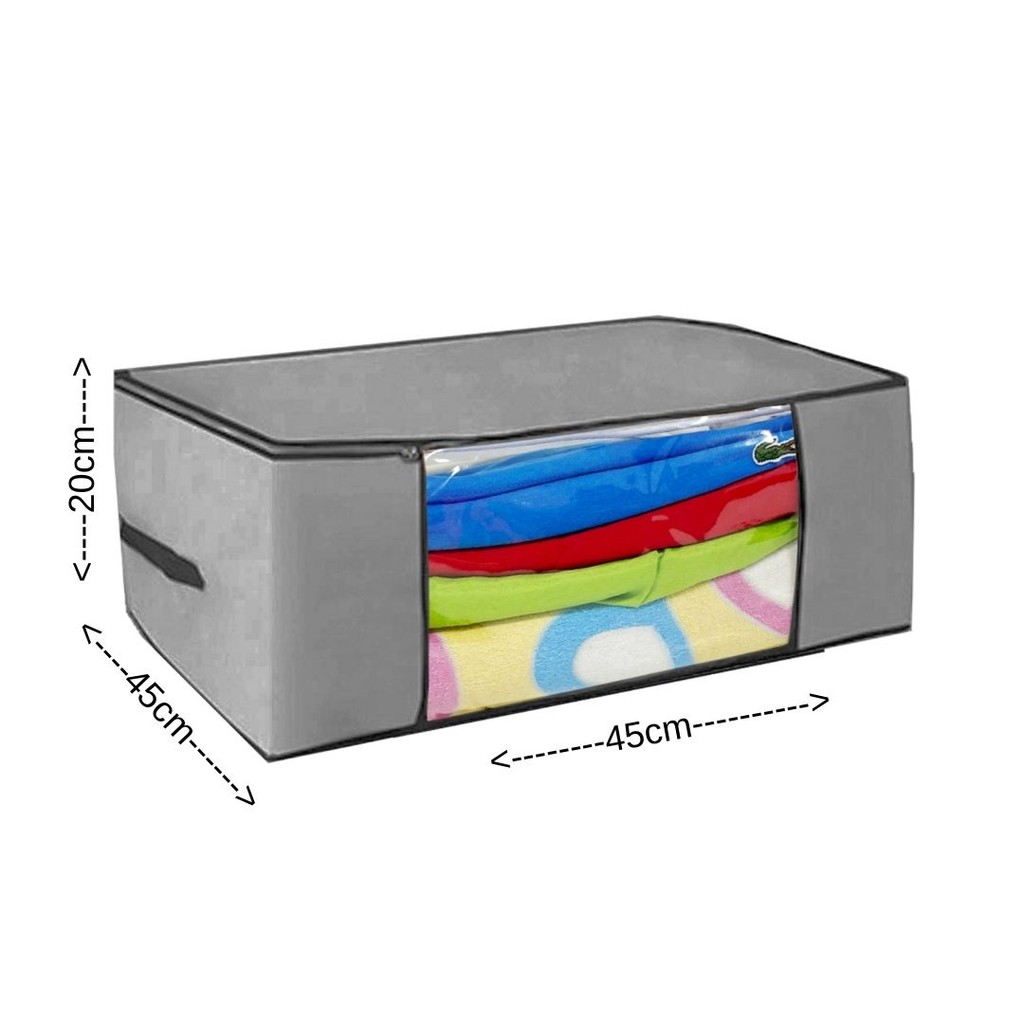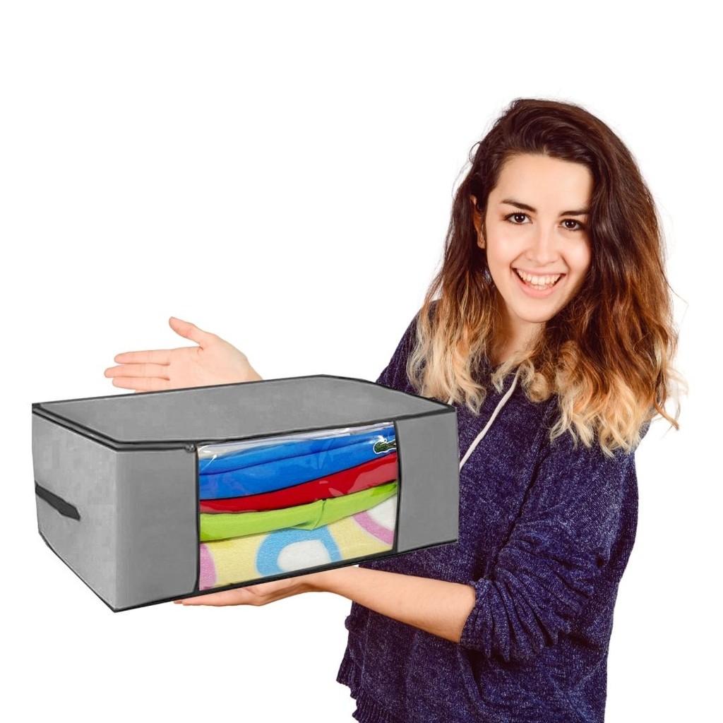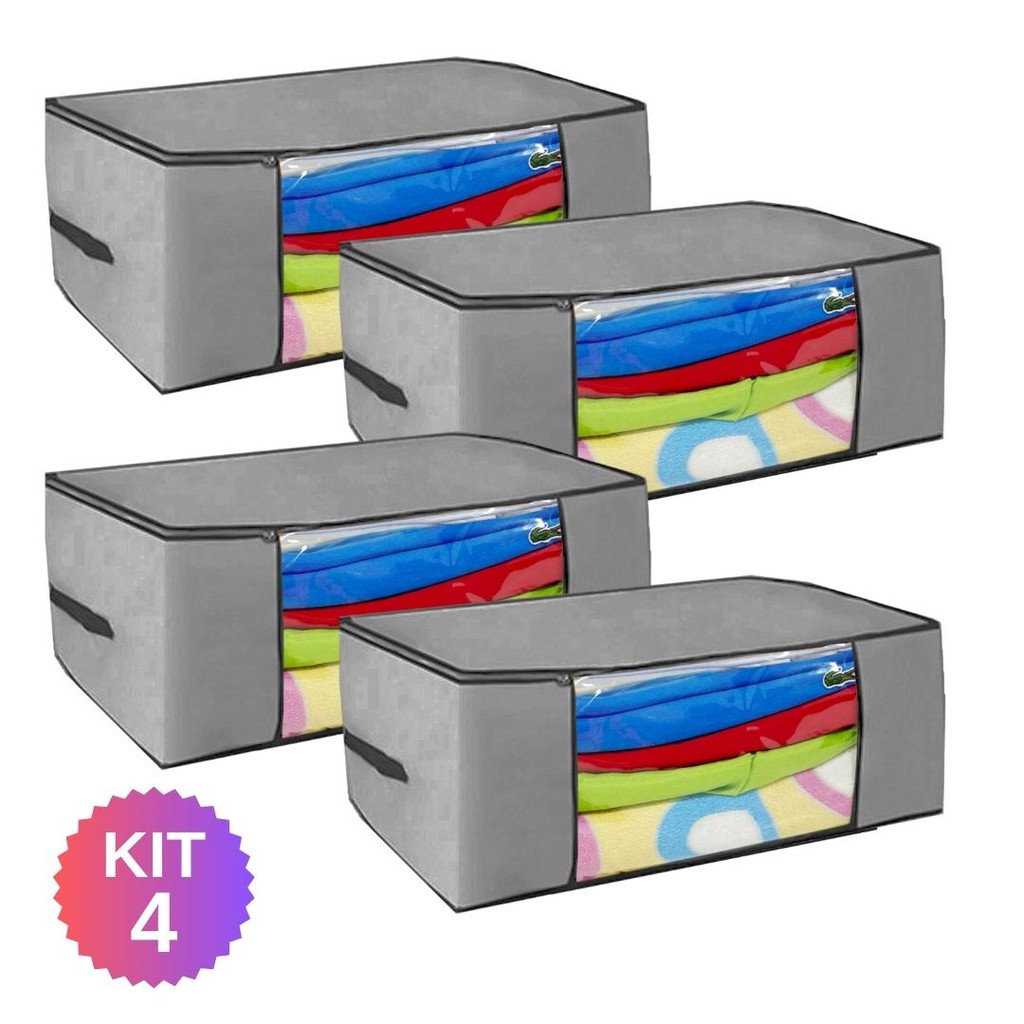 Kit 4 Caixas Organizadoras Premium – Roupas de Cama, Edredons e Inverno – 45x45x20cm, Cinza