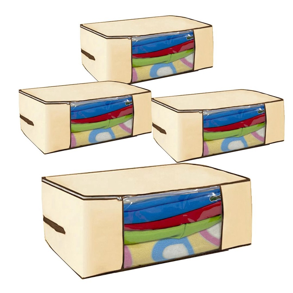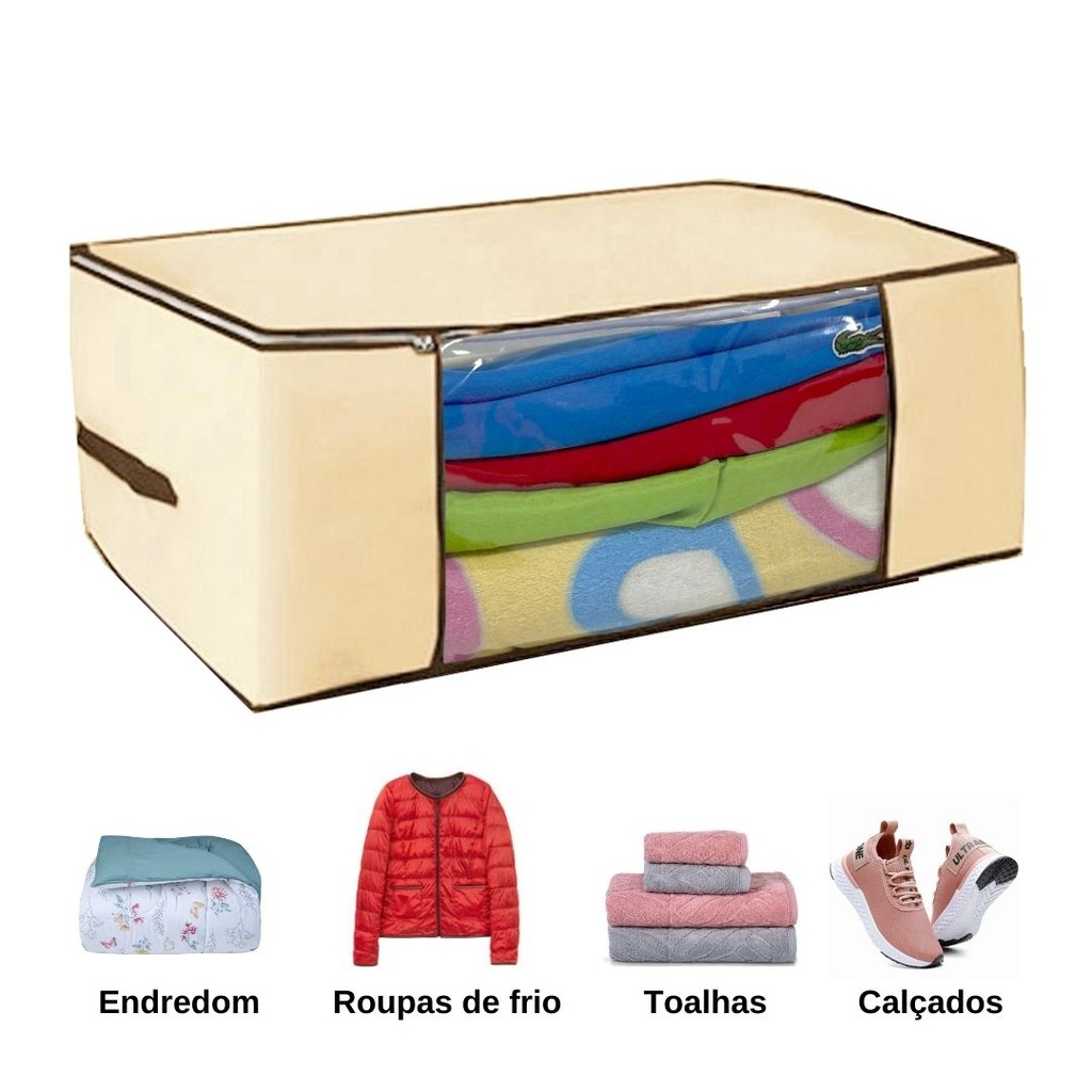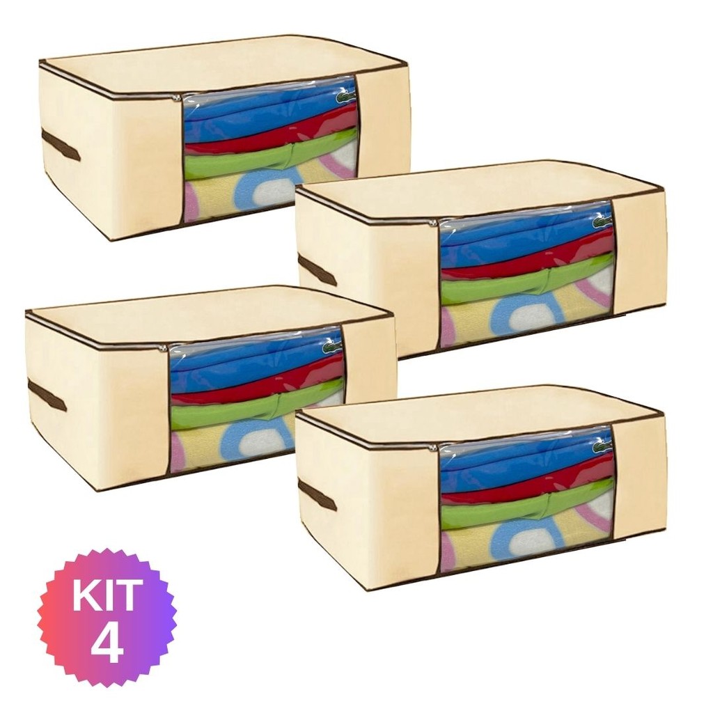 4 Organizadores Multiuso Creme com Zíper Duplo Reforçado – 45x45x20cm
