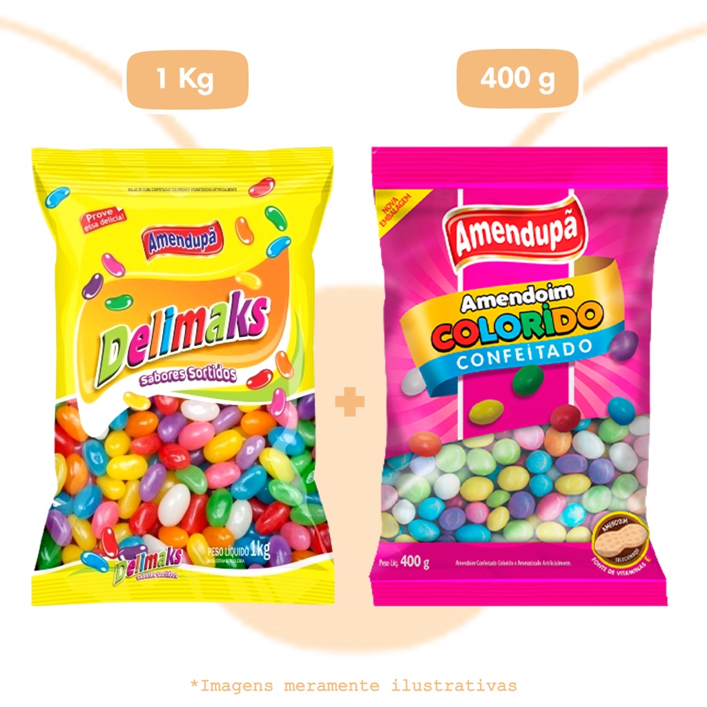 Bala de Goma Delimaks 1Kg + Amendoim Colorido Amendupã 400g