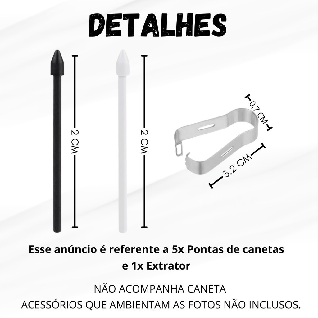 Kit Com 5 Unidades Ponteiras Reposição S Pen + 1 Extrator Compatível com linha S Tab Samsung